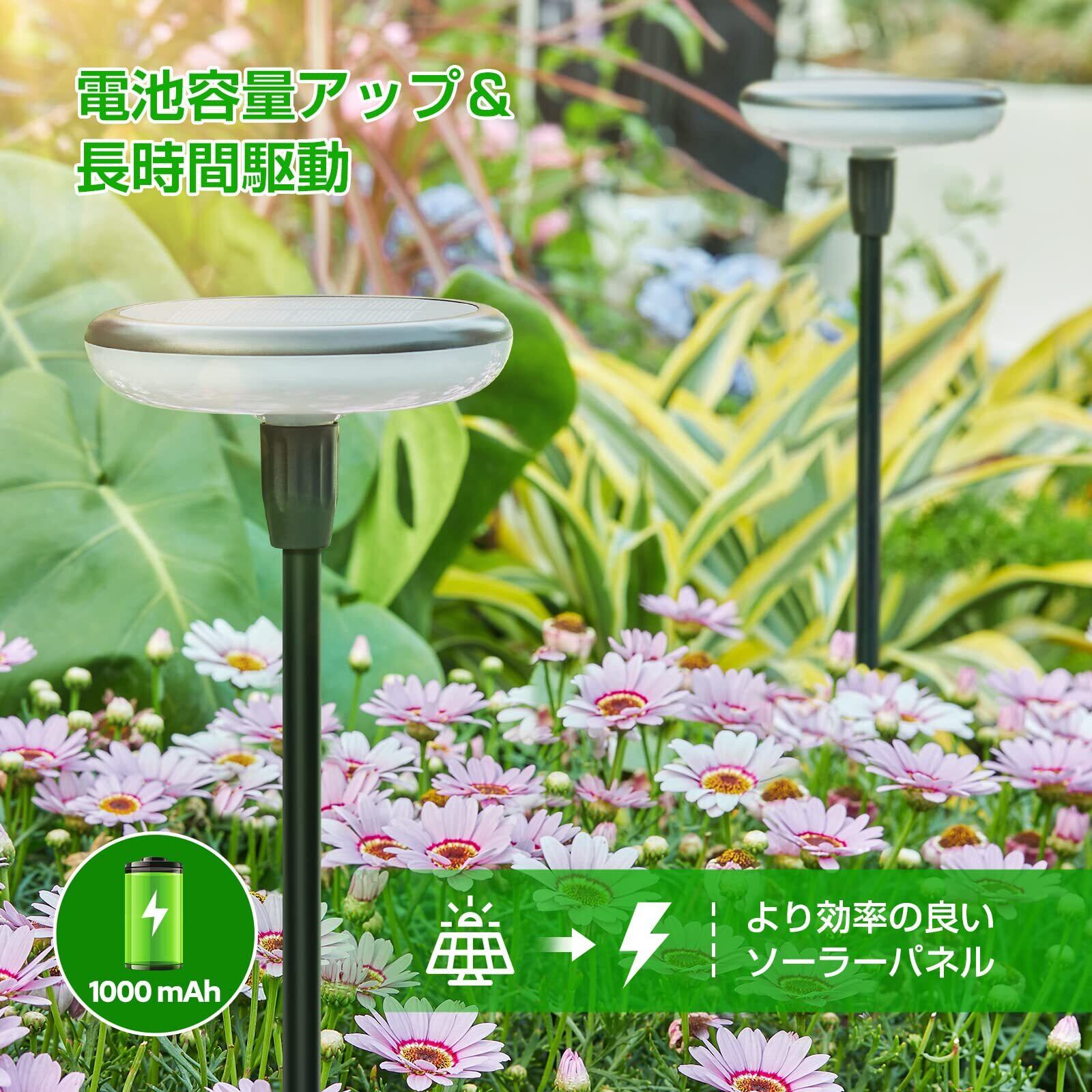 √【高品質&IP67防水】従来の太陽ライトより大きい太陽電池パネルを使用して下さい、太陽電池パネルは単結晶のケイ素に改善しました、1000mAhの充電池を内蔵、25% より多くの日光の転換の効率。日中は6~8時間充電、夜は10~12時間自動点灯、庭ライトはIP67防水認証も取得、雨、雪、霜を心配する必要がない、全天候対応可能、家の外で使うのに適して、あなたのために夜を照らすのです。