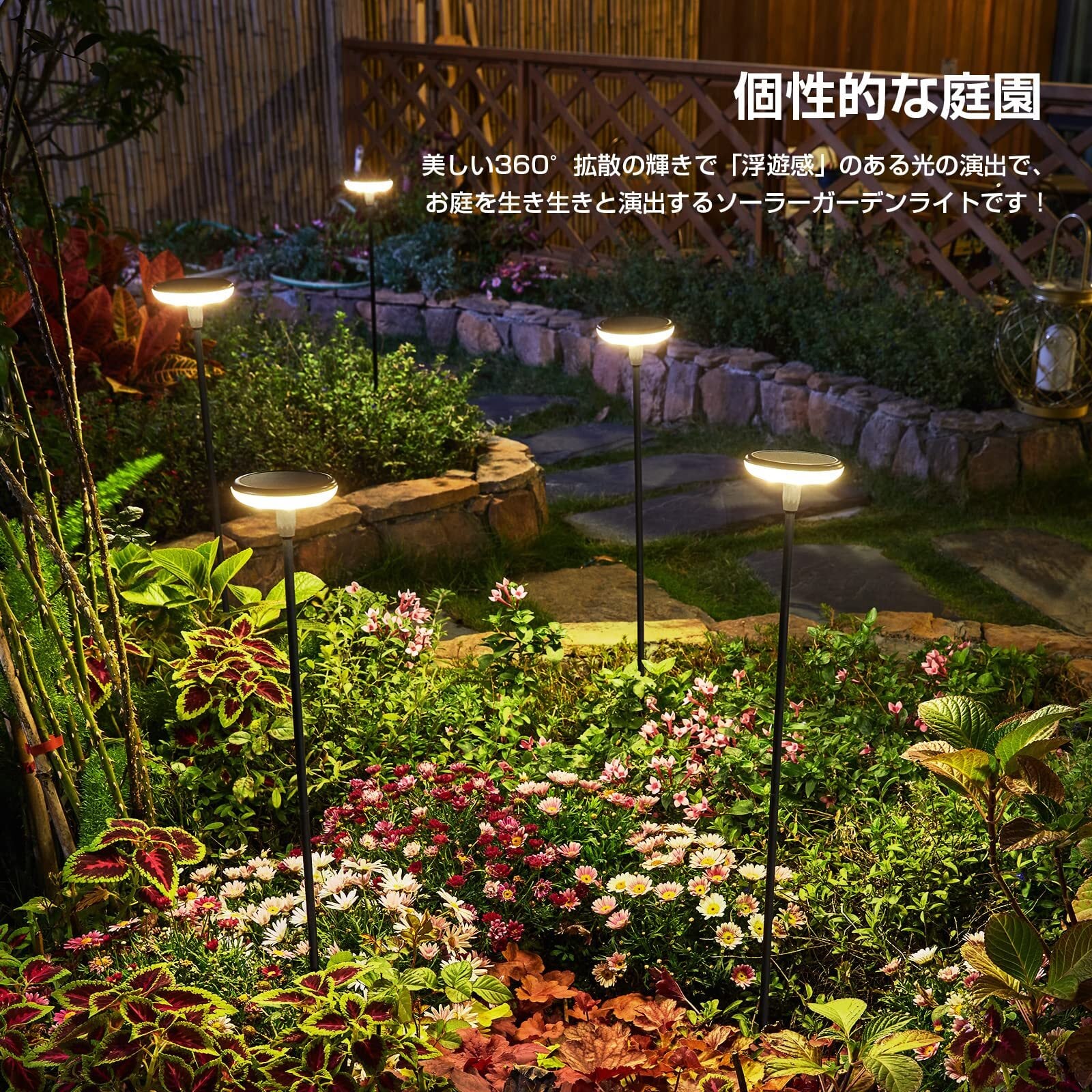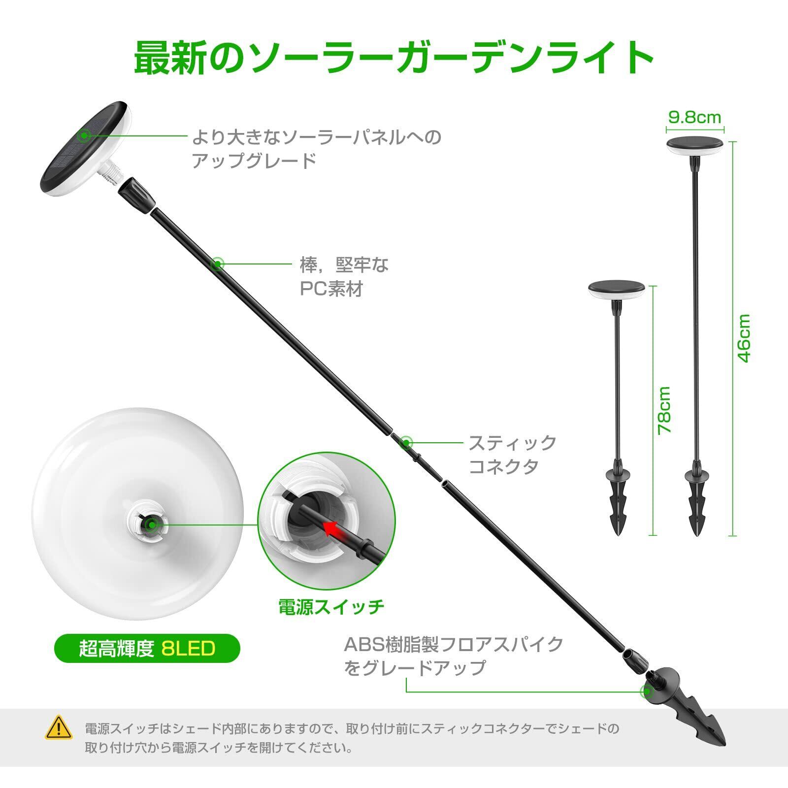 √【取付簡単&幅広い用途に対応】このソーラー屋外ガーデンライトは取扱説明書が付属しており、取扱説明書のステップに従うだけで設置でき、必要な場所に設置し、配線は不要で、暖かく、高輝度ランプシェード、庭、芝生、歩道、パティオに最適です。