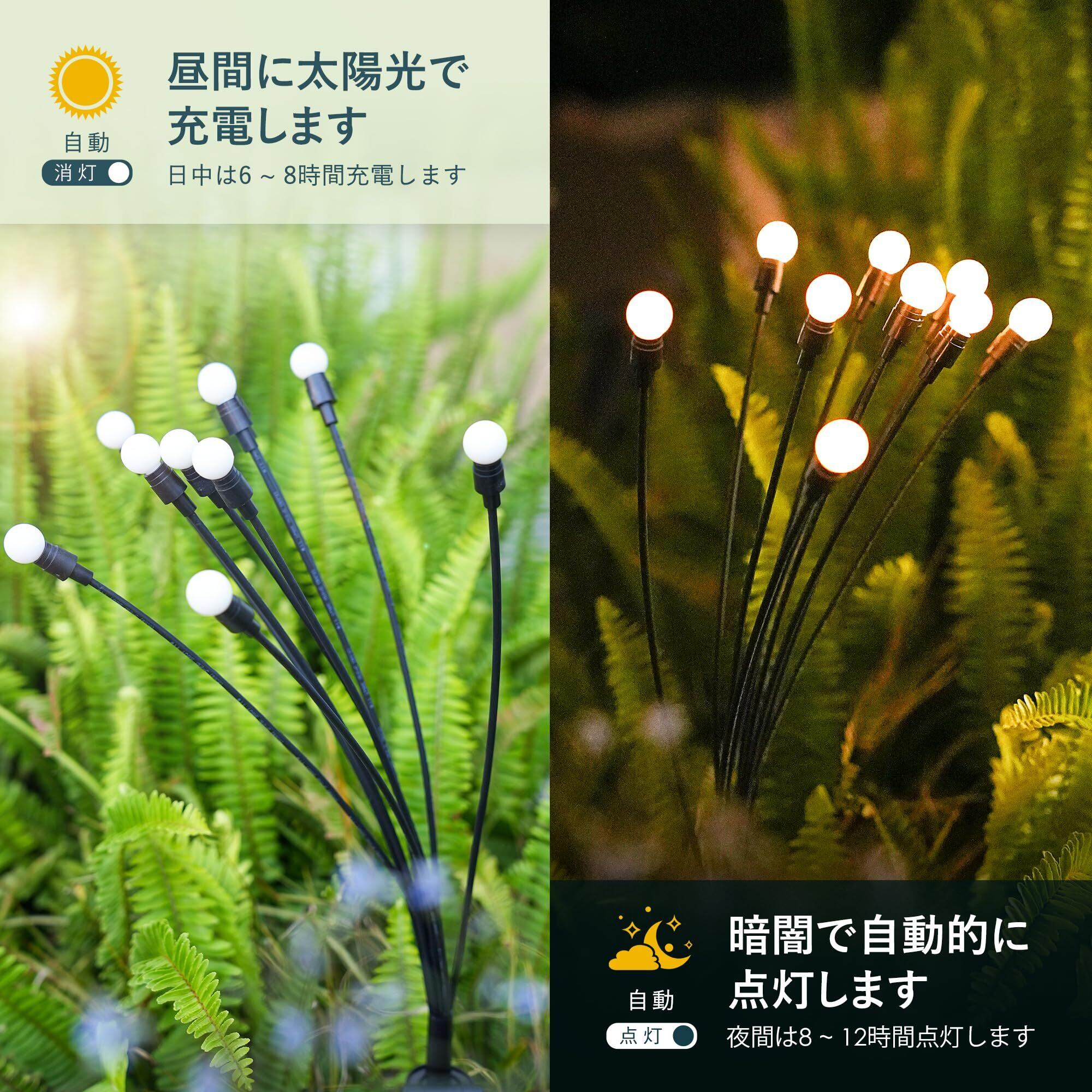 【幅広い用途】 庭園、鉢植え、花壇、園芸、玄関先、庭先、車道、歩道、芝生、ガーデニングや、玄関ポーチ通路などの屋外照明とデコレーションに最適です。 配線工事は不要で、日当たりの良い場所に挿すだけで、美しいホタルの光を楽しむことができます。 新築祝、ご家族やご友人へのプレゼントにも最適です。