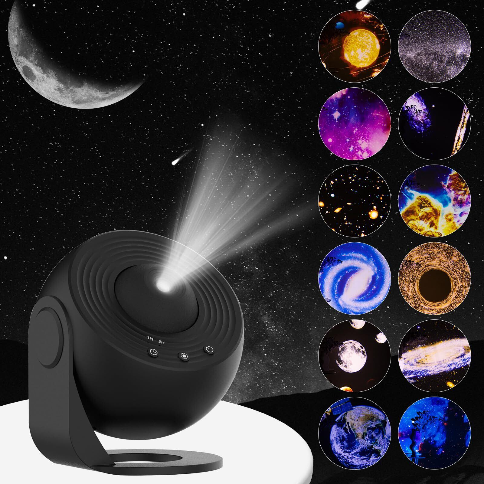 Mchodare ギャラクシープロジェクター スタープロジェクター リアルなLED星空 ナイトライト 12枚入りフィルムディスク付き 太陽系星座/星空/星雲/月/天体 プラネタリウム 家庭用 部屋用 本格的 大人 子供 装飾/クリスマスプレゼント/ベッドサイドランプ/デート/リラックス (ブラック) | KSショップ