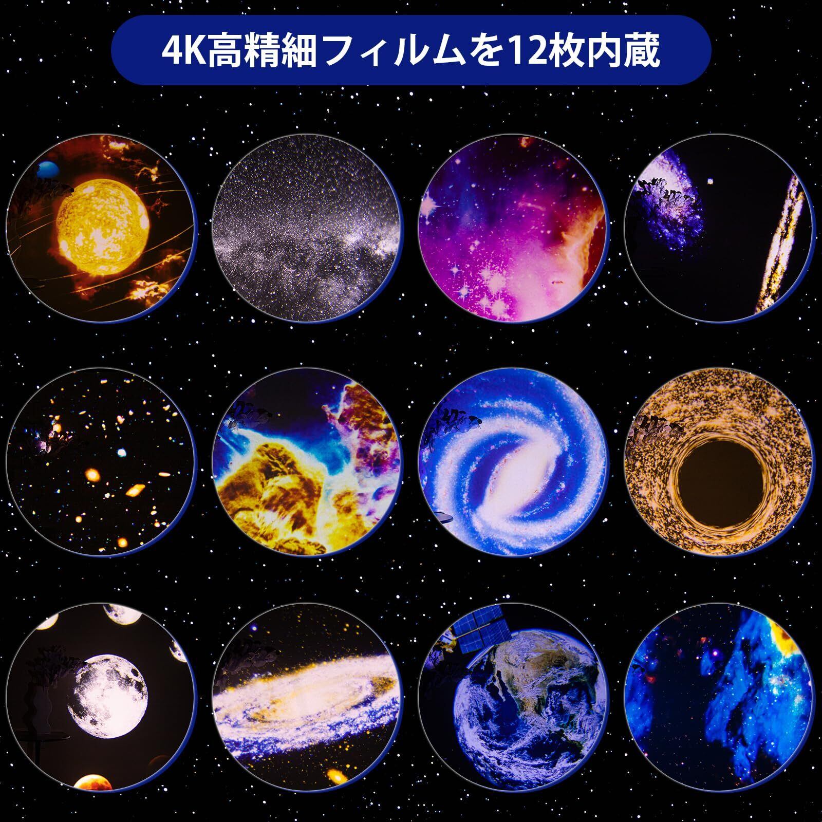 複数のモード:このプラネタリウムスタープロジェクターには、12枚の惑星フィルムディスクと自然光が付属しています。 HD ギャラクシー ライトは、壁や天井を星や星雲で満たし、天の川の真ん中にいるような没入感を生み出します。