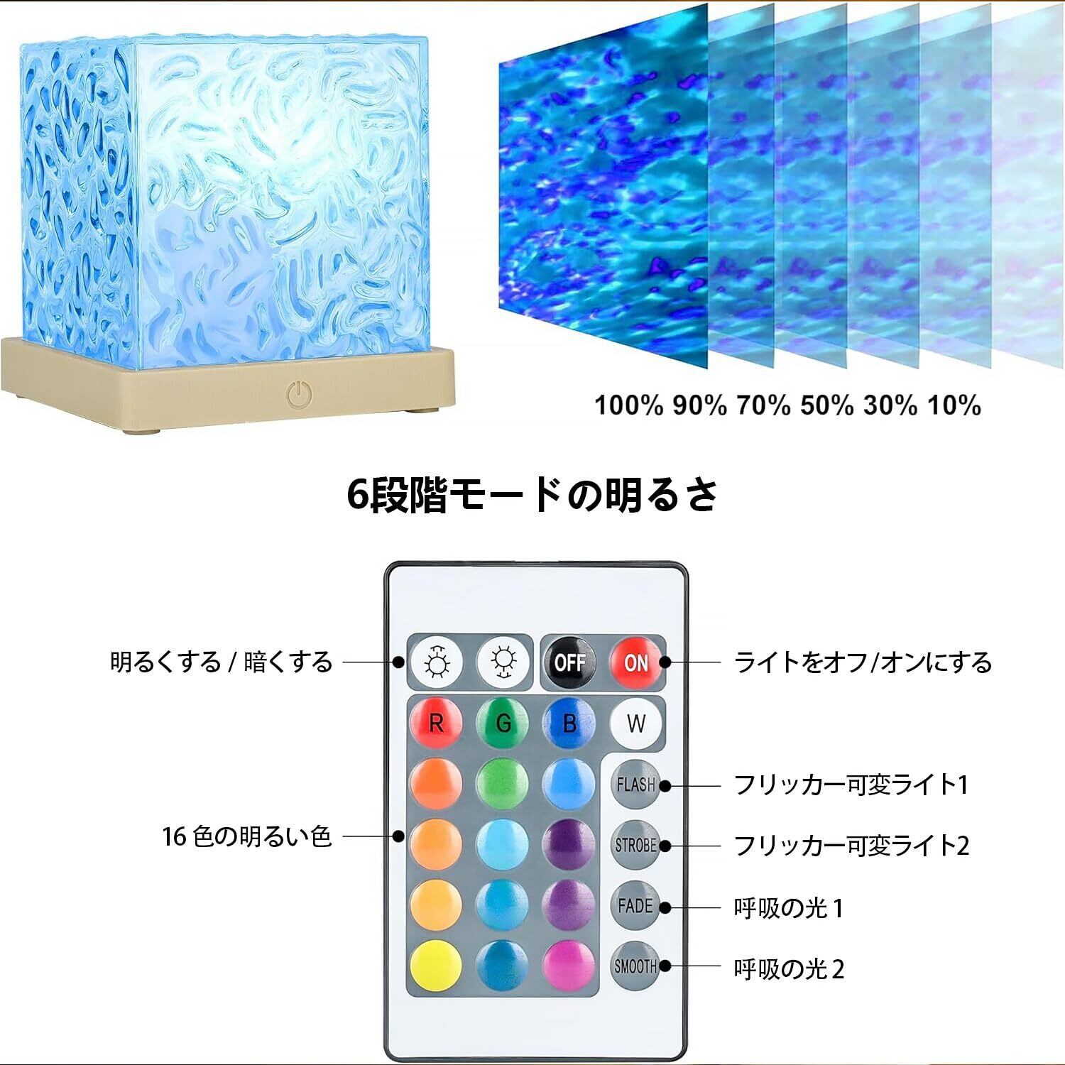 Tigwiss ナイトライト 海ライト USB充電式【リモコン付き/16色変換/明るさ調節】ダイナミック回転ウォーターリップル ランプ 人気 プロジェクターライト 水面 ライト パーティー/卒業祝い/誕生日 室内装飾用 プレゼント