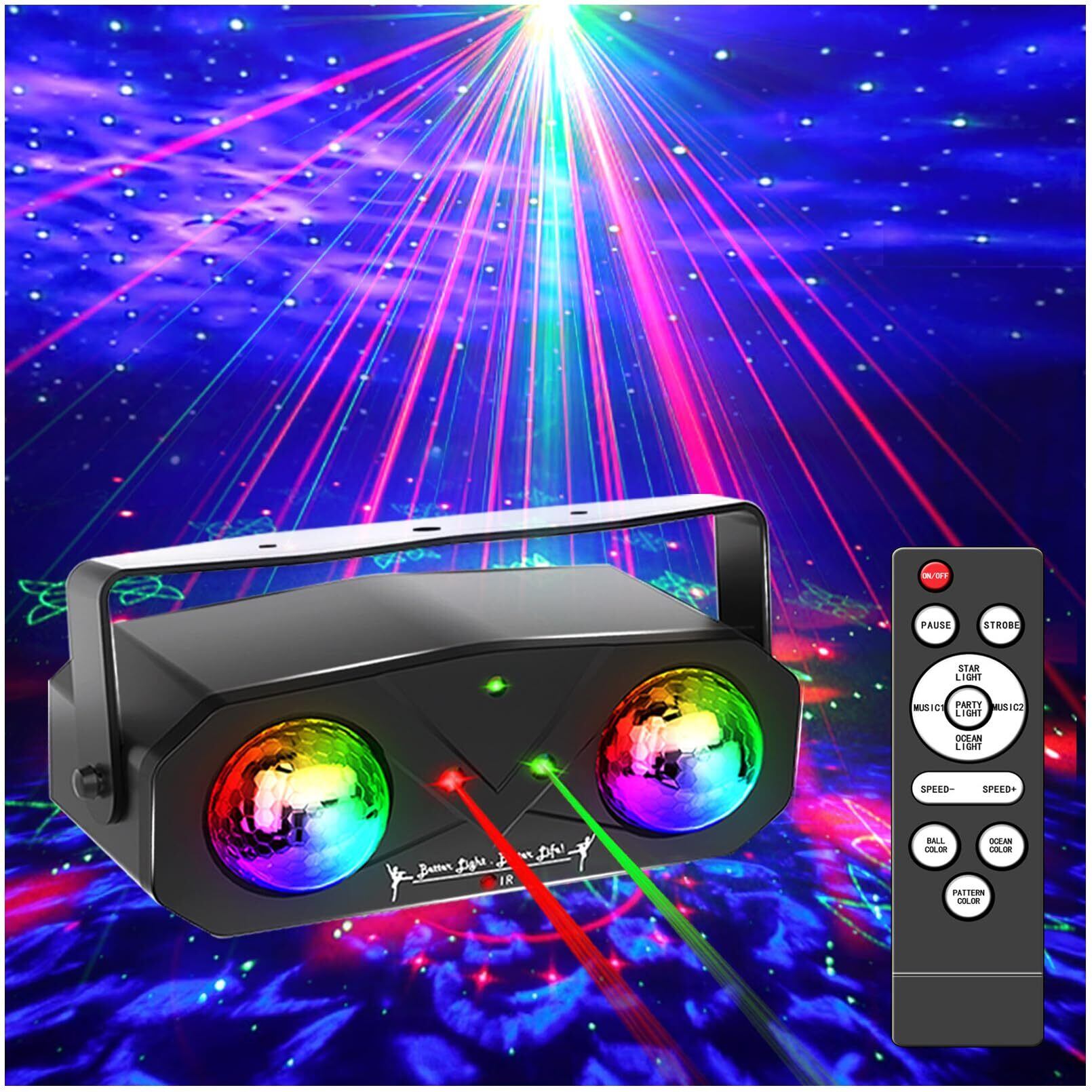 パーティーライトスタープロジェクターおよび海波プロジェクター3in 1、パーティーナイトライトまたは子供の大人ゲームルームのような多くの機会に適したリモートコントロールの多目的DJ Dicsoボールホームライト ホームシアター天井部屋装飾魔法の回廊 | KSショップ