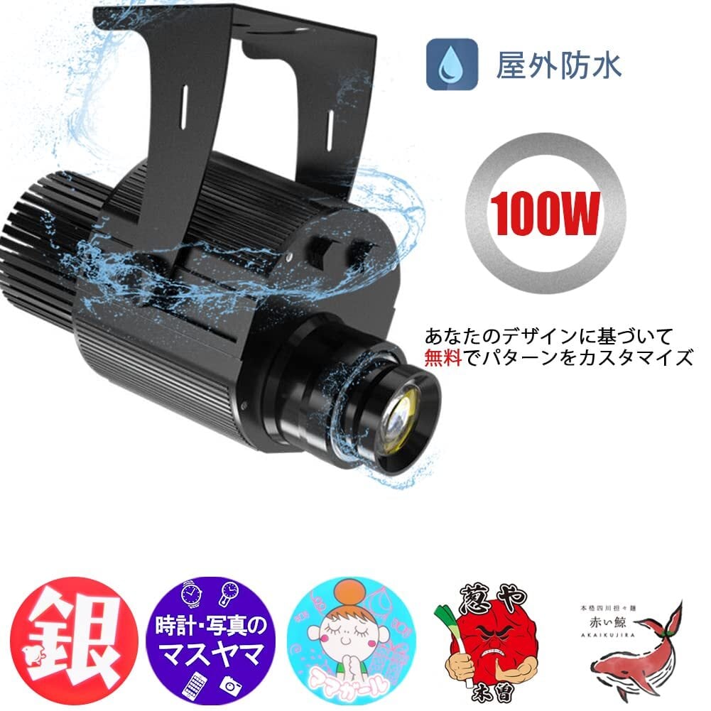 100W広告投影ライト 屋外防水仕様 回転式 スポットライト GOBO無料付属 カスタムメッセージ・ロゴ投影