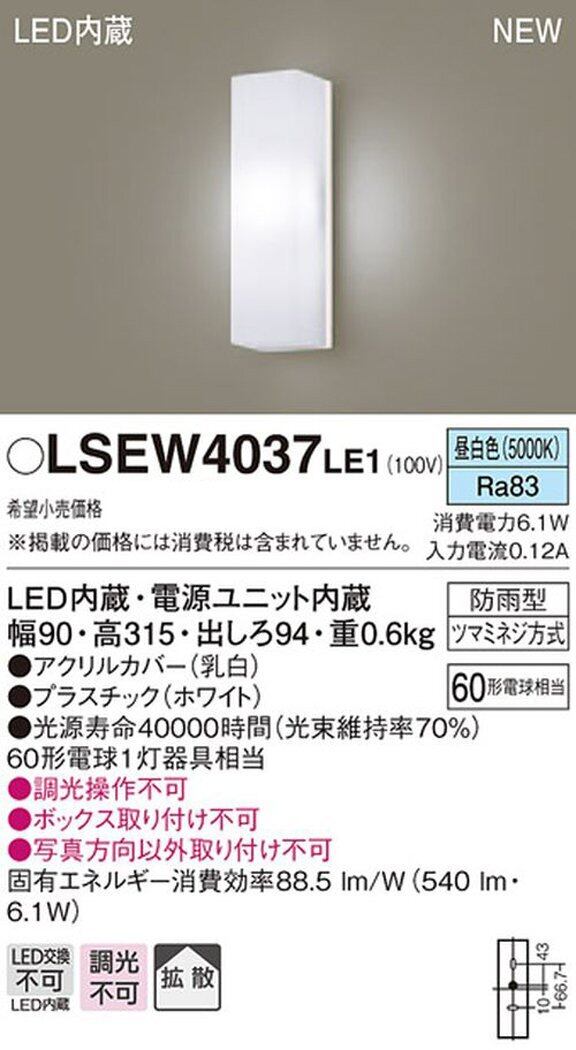 パナソニック(Panasonic) LED ポーチライト 壁直付型 40形 昼白色 LSEW4037LE1