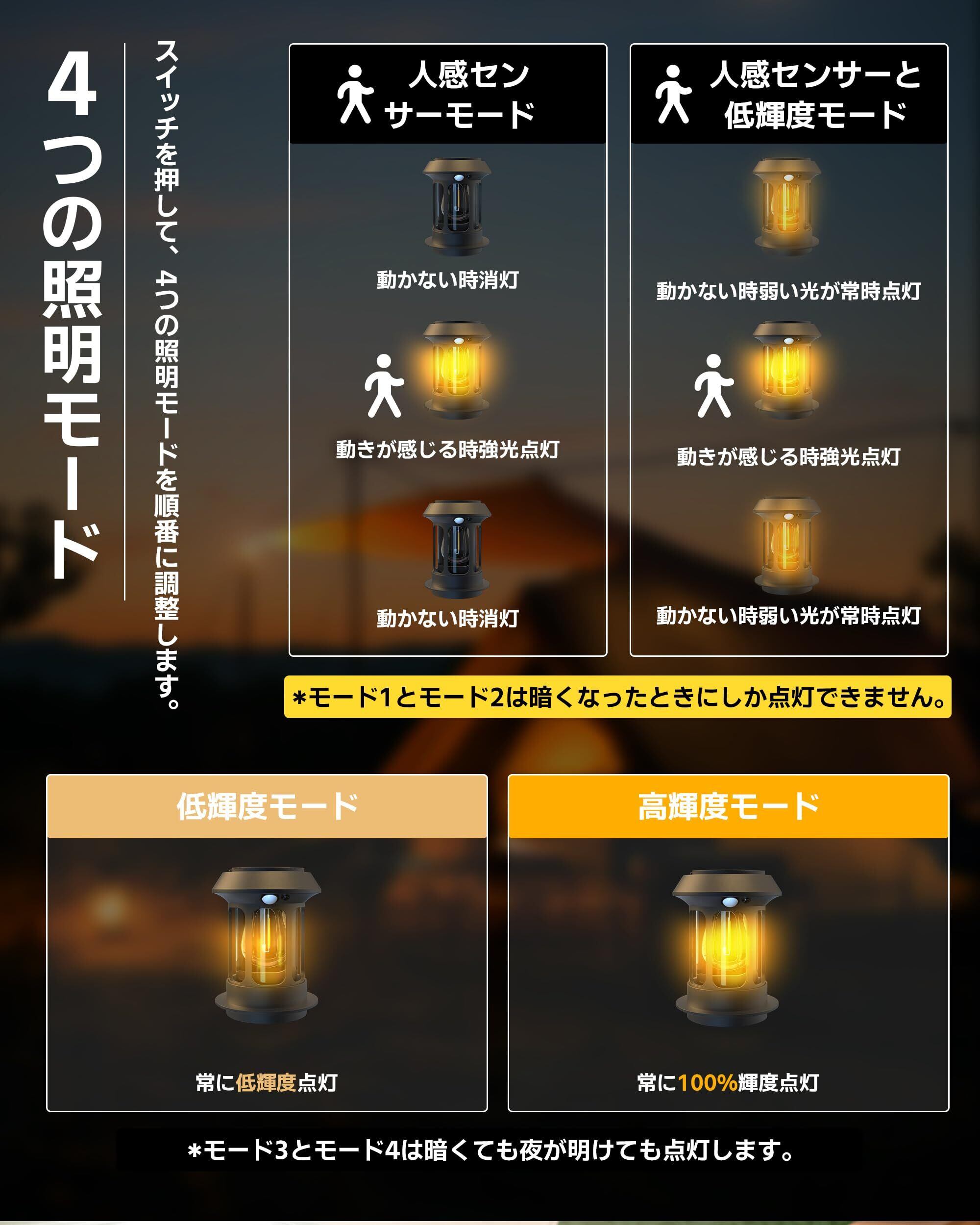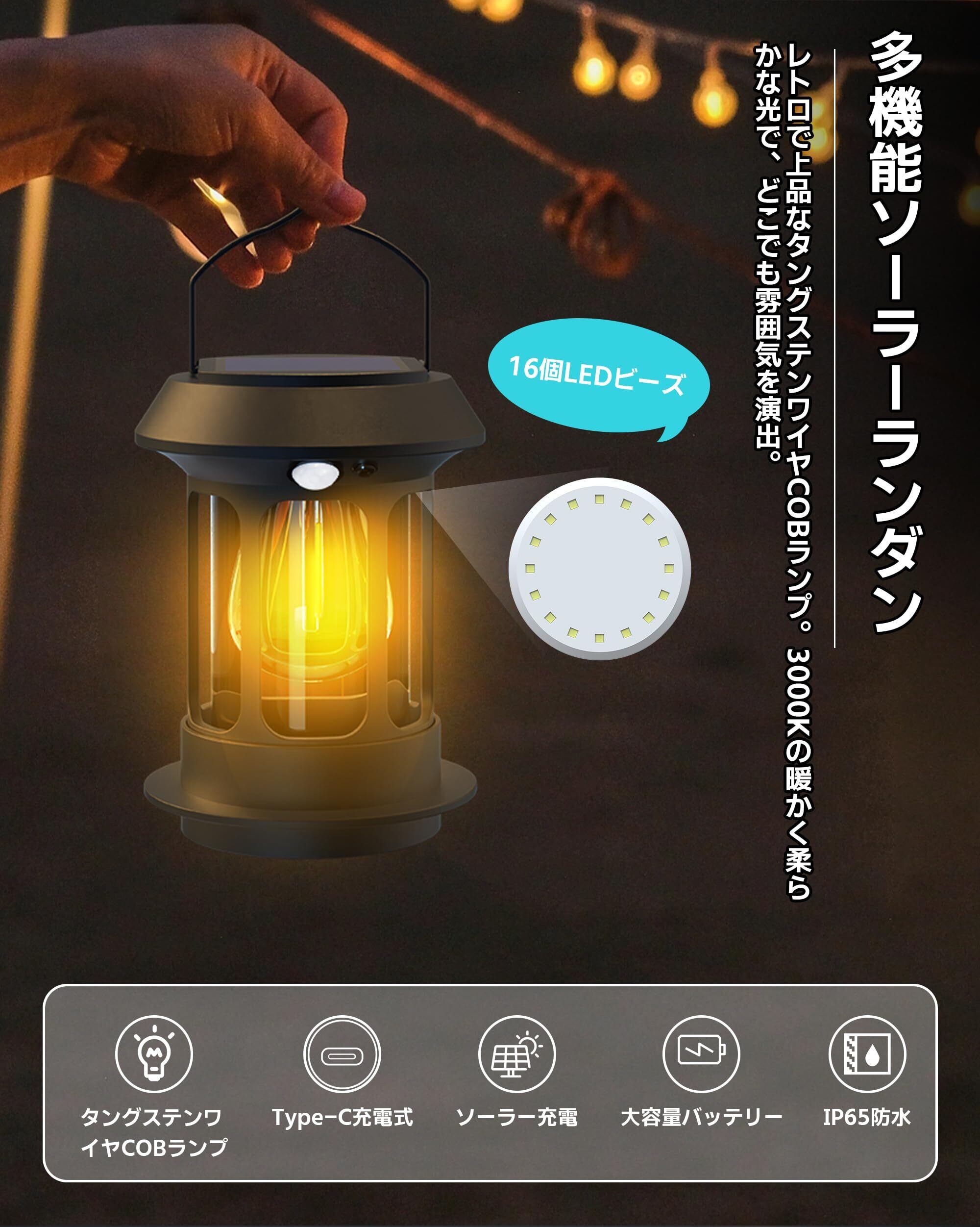 LED ランタン ソーラー 充電式 キャンプ 【人感センサー & 4つ点灯モード】コードレス 作業灯 超高輝度 災害 ライト スームルーム ランタン 防水 アウトドア 車中泊 登山 夜釣り 防災 停電 緊急 非常用 電球色 2セット