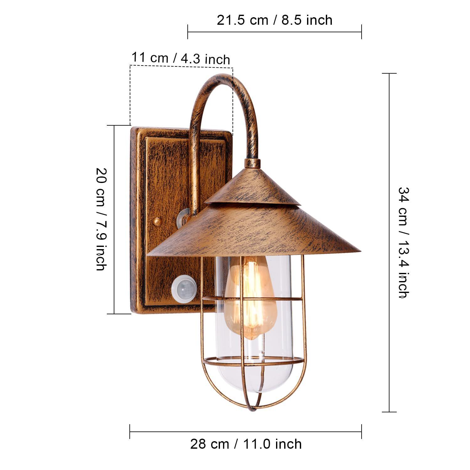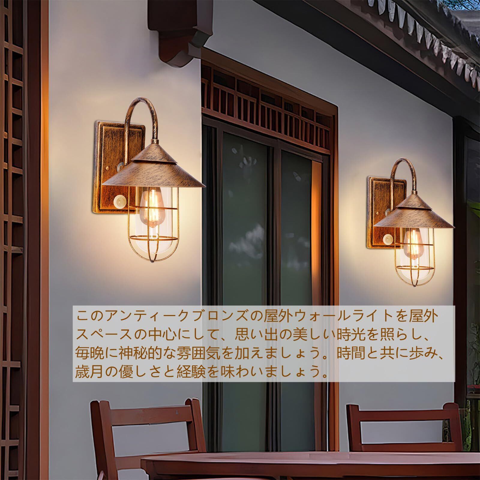 KAWELL 玄関灯 人感センサー 玄関照明 屋外 ポーチライト 屋外 ウォールランプ レトロなウォールライト 庭園灯 照明器具 防雨型 壁掛け 外灯 E26口金【電球別売り】 (赤銅色) | KSショップ