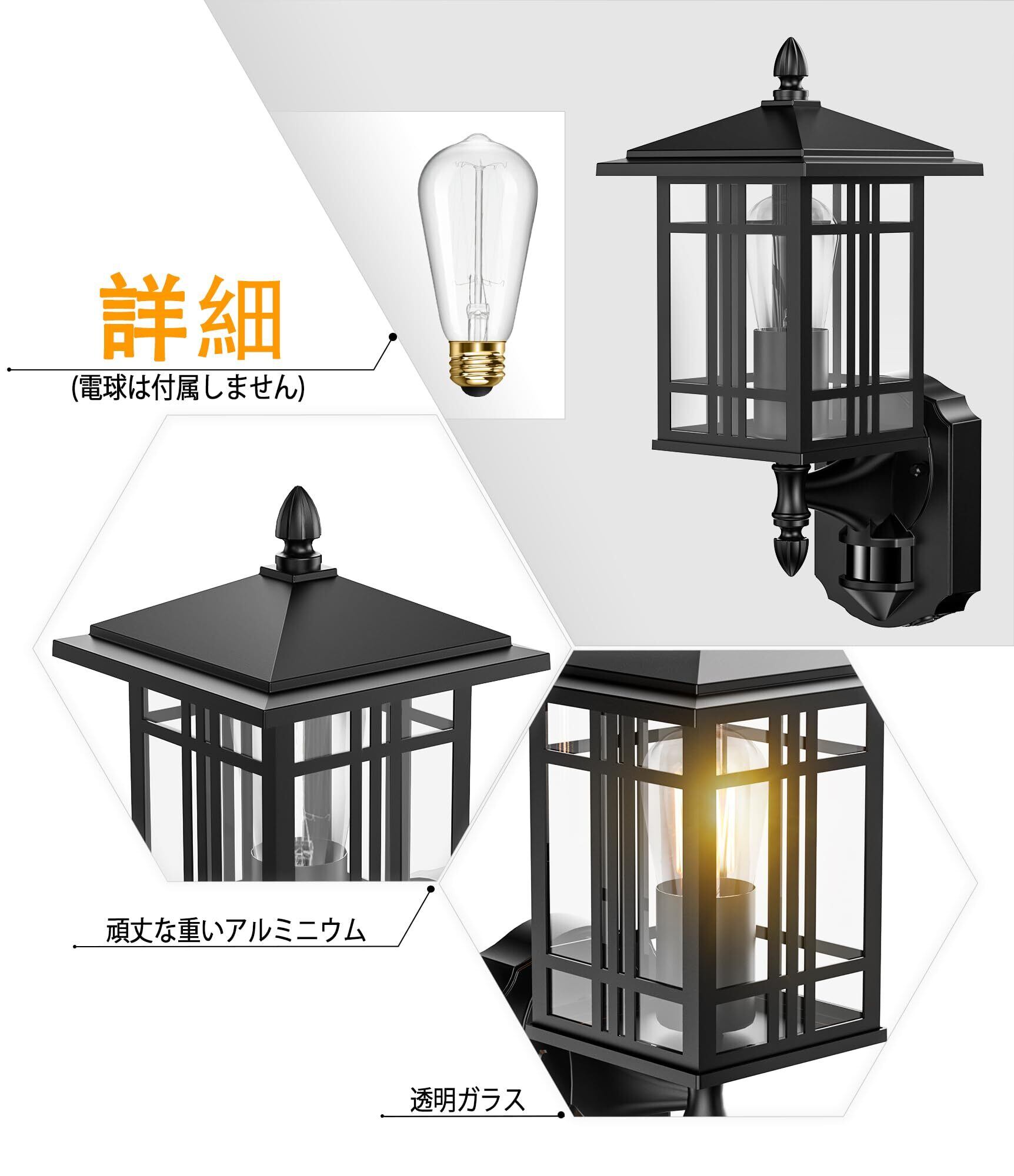 Lamomo屋外玄関ライト人感センサーポーチ防雨型ガーデンライト取付簡単玄関灯工業風アンティーク調レトロ調照明門柱灯壁直付型【電球別売り】