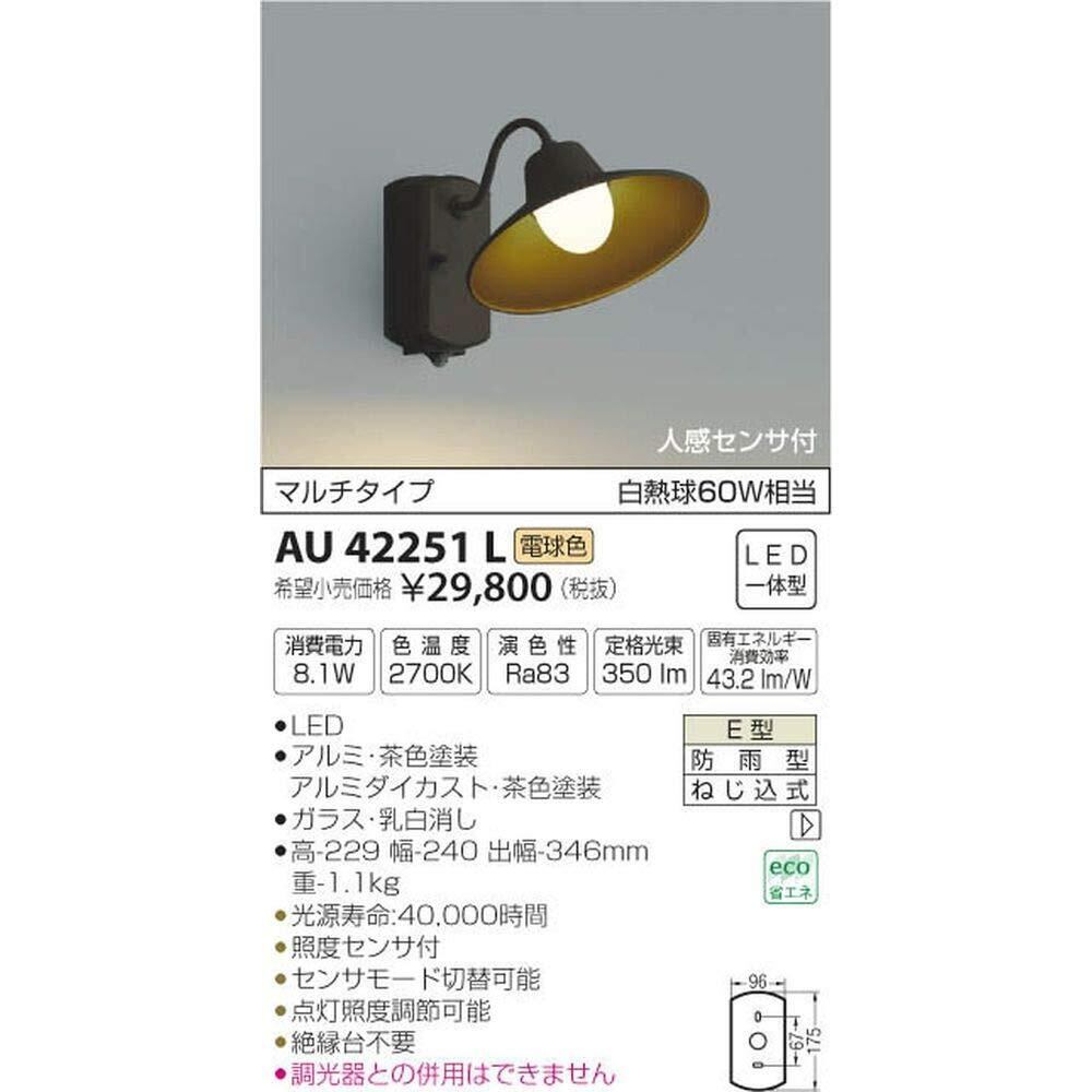 コイズミ照明 人感センサ付ポーチ灯 マルチタイプ 茶色塗装 AU42251L