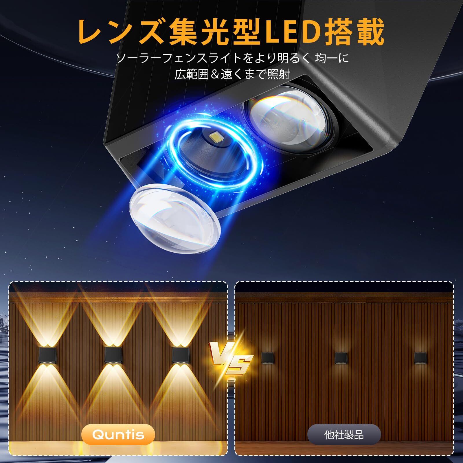【高輝度LED+光学レンズで広範囲を明るく照射】 各ライトには高品質なLEDチップを4個搭載し、光学レンズによって光を効率的に集約。1灯あたり100ルーメンの明るさを実現し、無レンズタイプのソーラーライトよりも50%以上明るく、より広い範囲を均一に照らします。夜間のお庭や玄関、階段、通路の安全確保に最適で、防犯対策としても効果的です。
