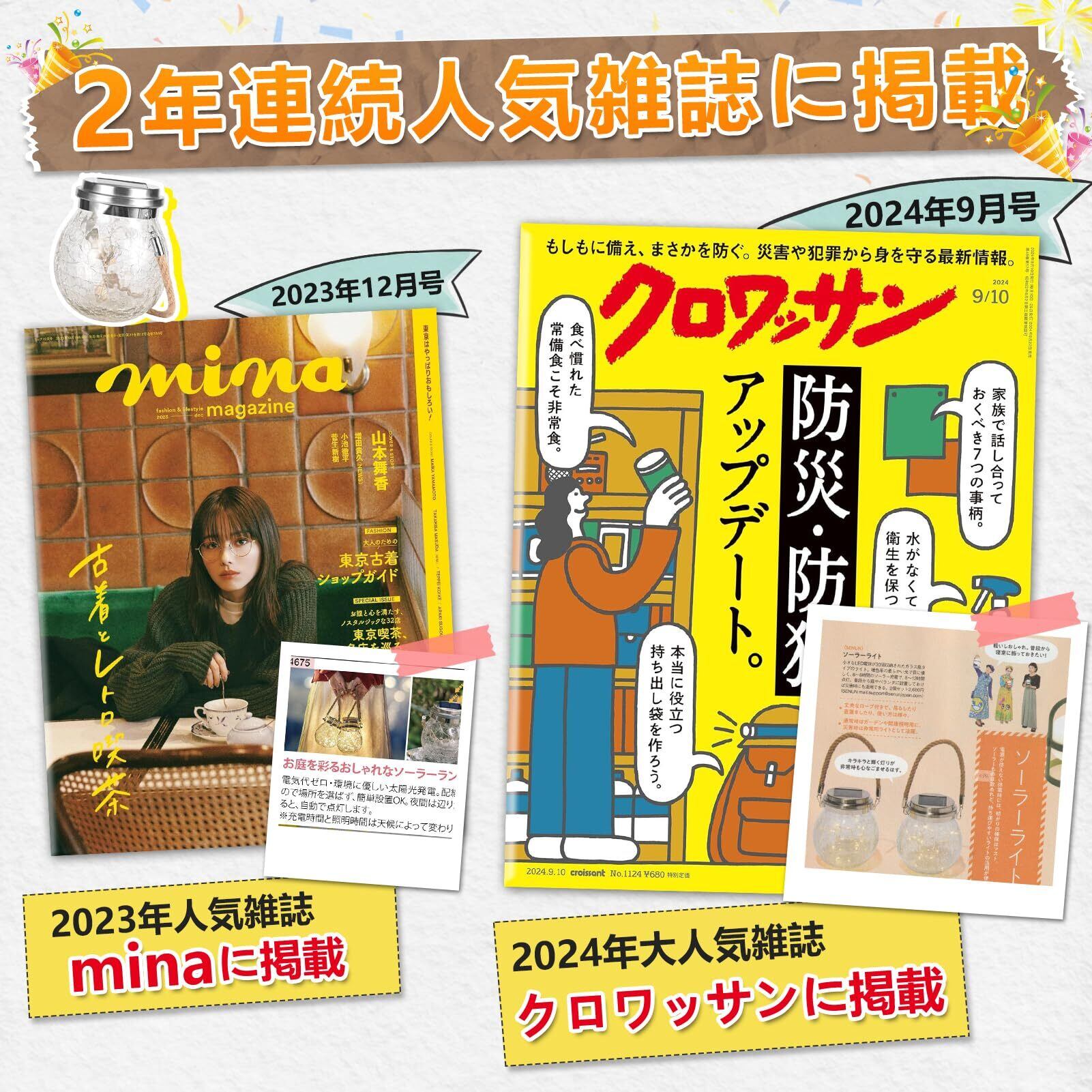 【2年連続雑誌掲載】 SENUN ソーラーライト ソーラーランタン ガーデンライト 屋外 吊り下げ 防水 暖色 電球色 自動点灯 2個セット