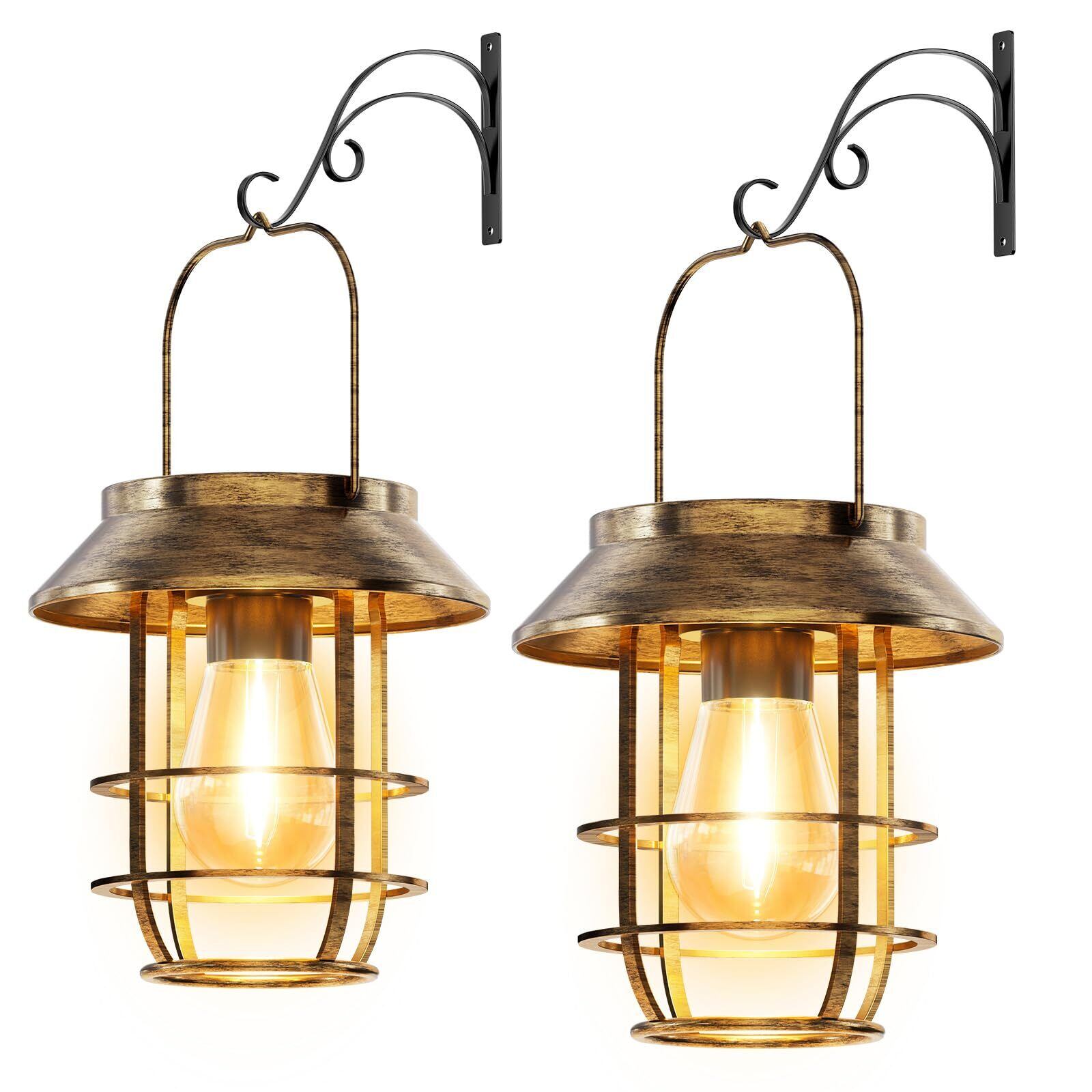 Letmy ソーラーライト 屋外 防水 ソーラーランタン ガーデンライト 鉄製 おしゃれ ledランタン 電球色 太陽光パネル充電 夜明け 自動オン/オフ 庭、花壇、パティオ、玄関、ベランダ、壁、駐車場、歩道、パーティーなどに適用 屋外 照明 ガーデニング イルミネーション 2個セット