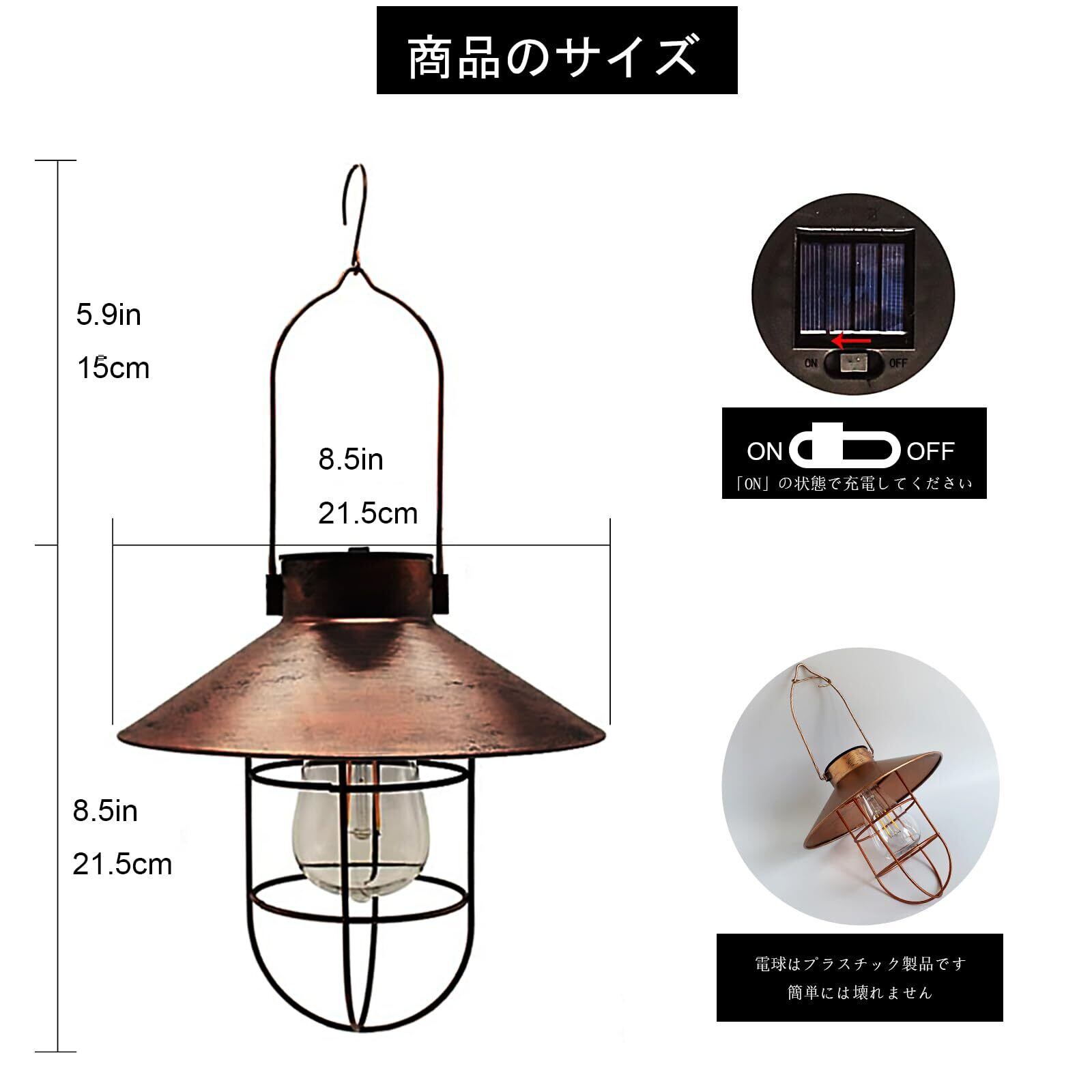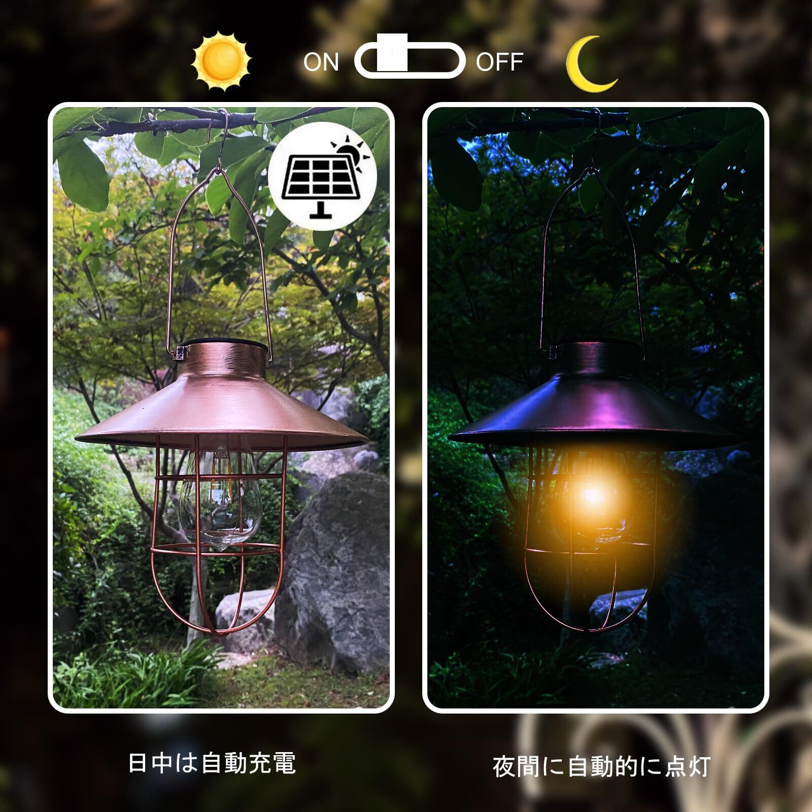 【レトロソーラーランプ】ソーラーアイアンランタン、レトロなアイアンケージと温かみのある電球色がノスタルジックな空間を演出する、昼も夜も存在感のあるソーラーランプです! 疲れた体と心を癒します。