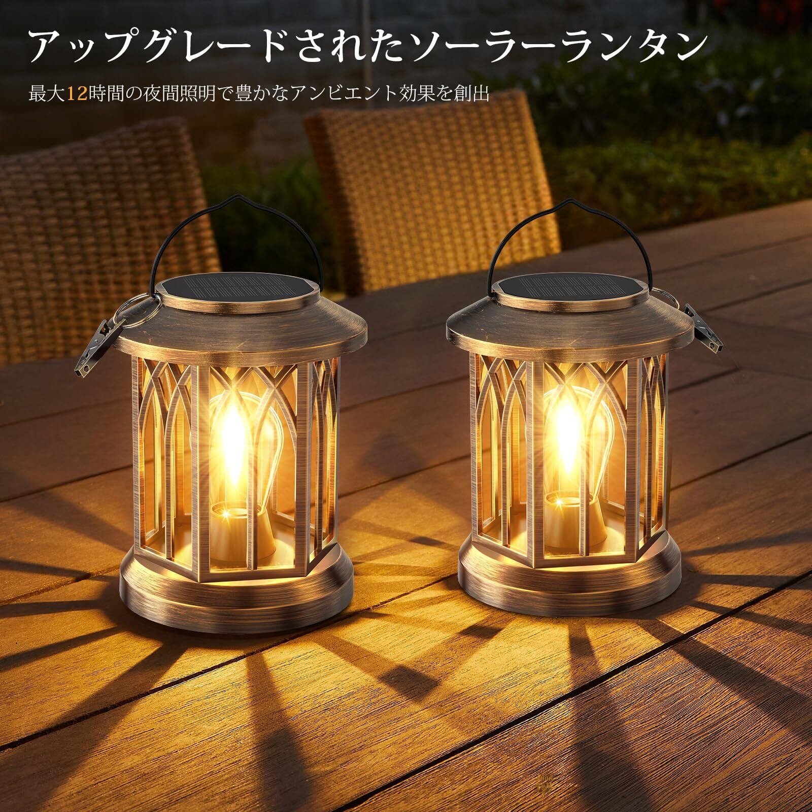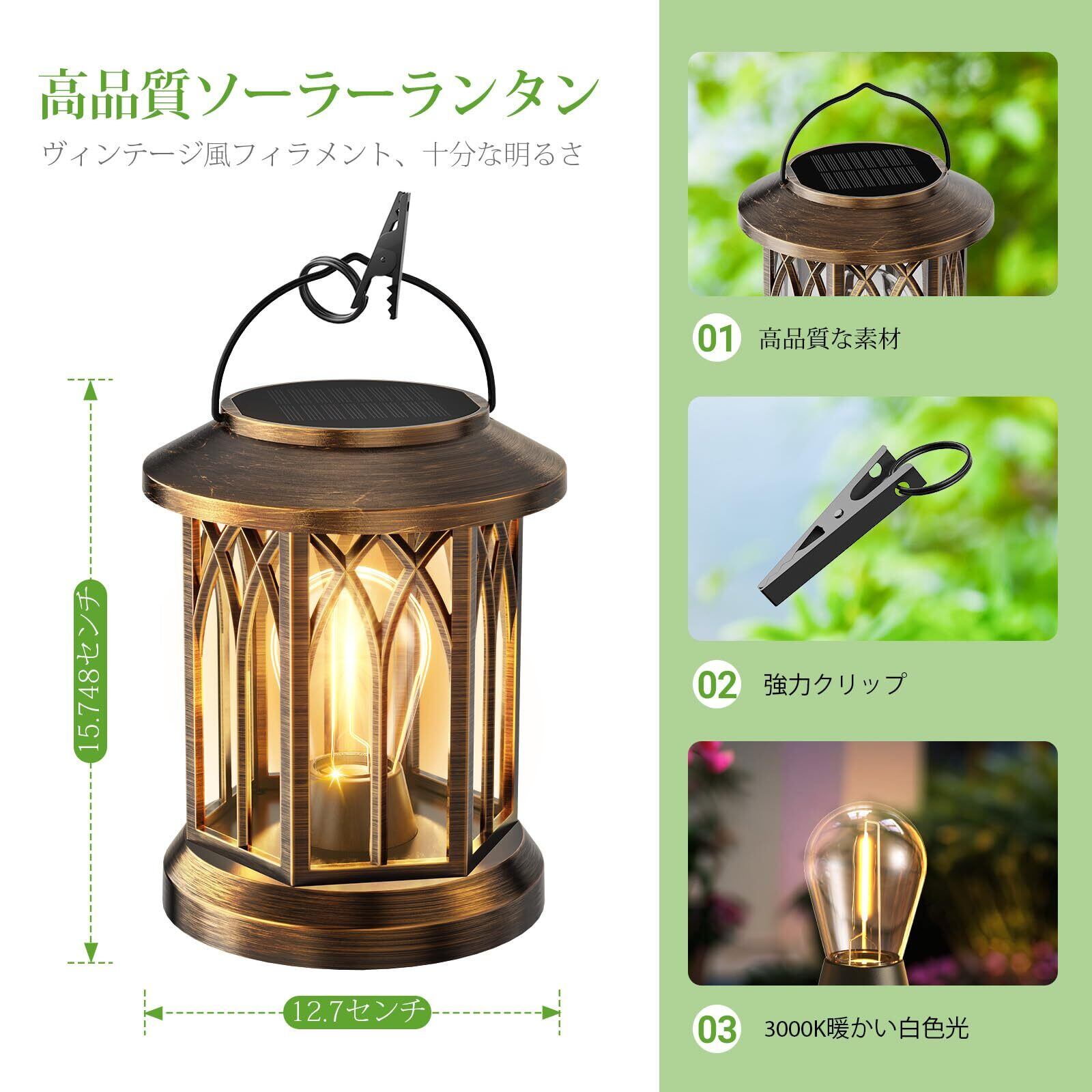 Letmy ソーラーランタン ソーラーライト 屋外 防水 ガーデンライト おしゃれ ledランタン LED 電球色 夜明け 自動オン/オフ 庭、花壇、パティオ、玄関、ベランダ、駐車場、歩道などに適用 屋外 照明 ガーデニング イルミネーション 母の日ギフト (ブロンズ色, 2)