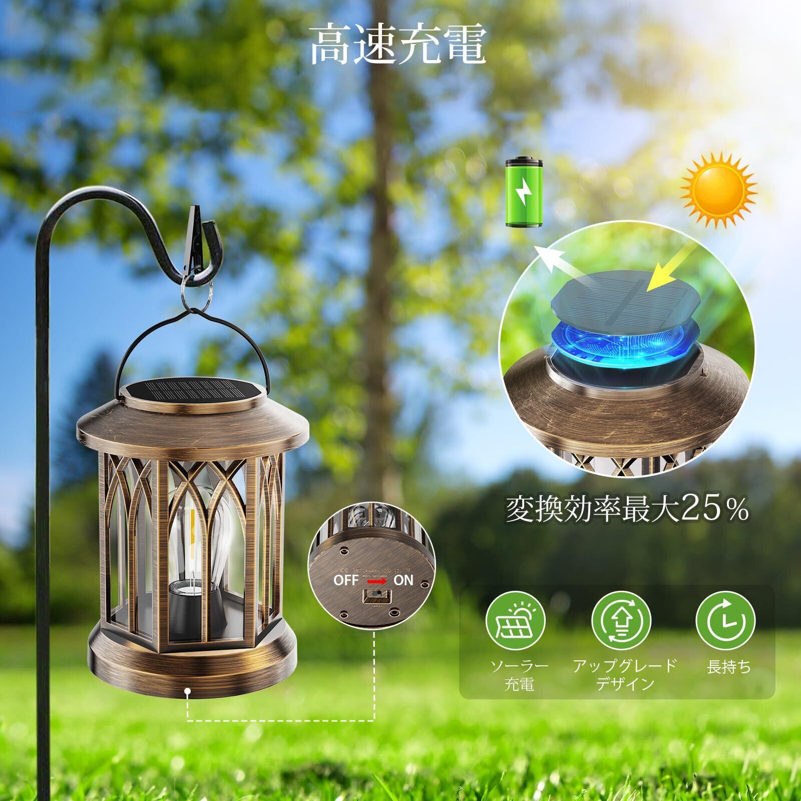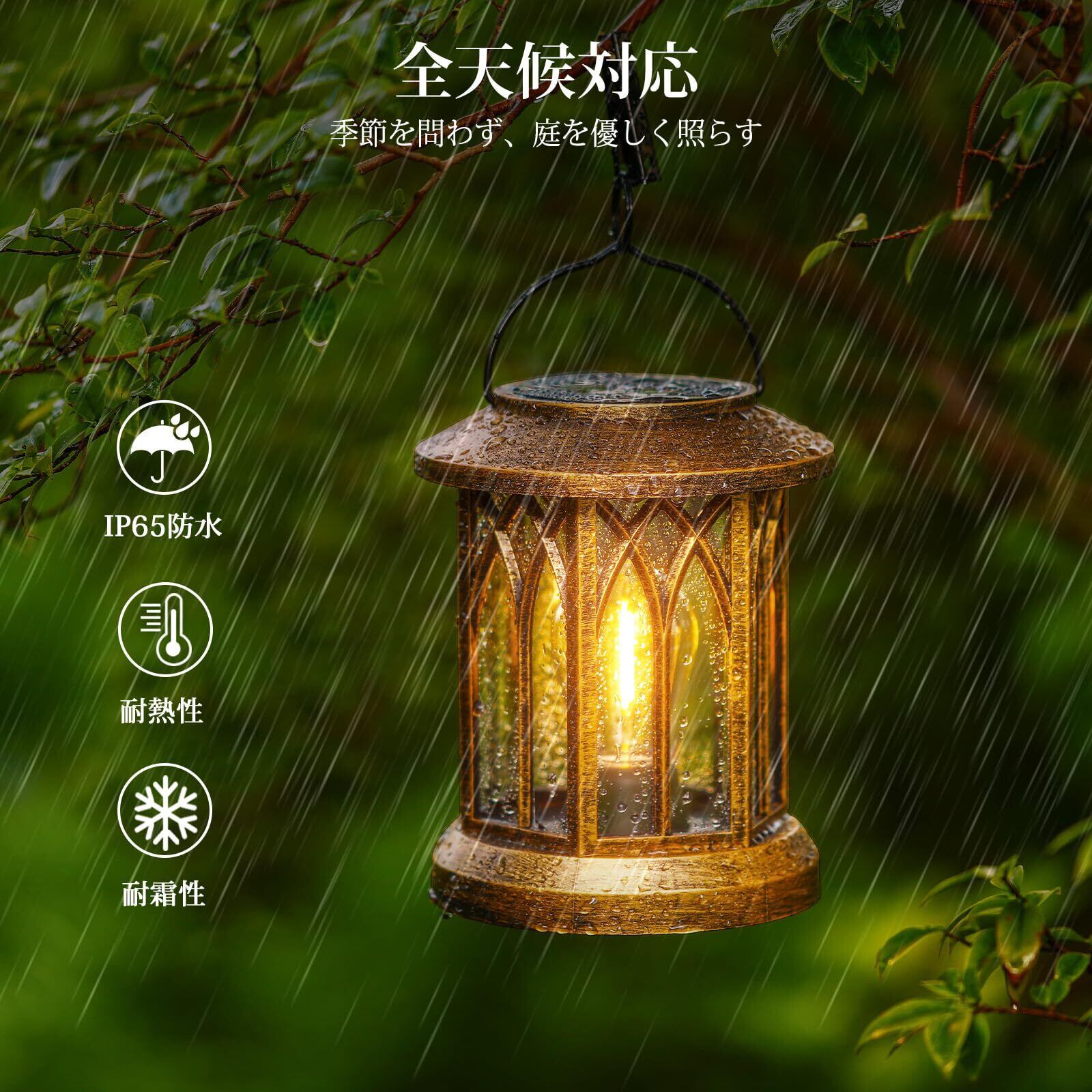 【レトロデザイン& ソーラーランタン】:本屋外ランタンのデザインは伝統と現代を融合して、和傘の骨組技術を応用した耐衝撃構造で、歴史的意匠を現代的解釈で再現したレトロモダンな佇まい。本ソーラーランタンは99%の庭スタイルに調和でき、和風庭園から洋風テラスまで、照明器具としてだけでなく芸術品としての景観演出します。