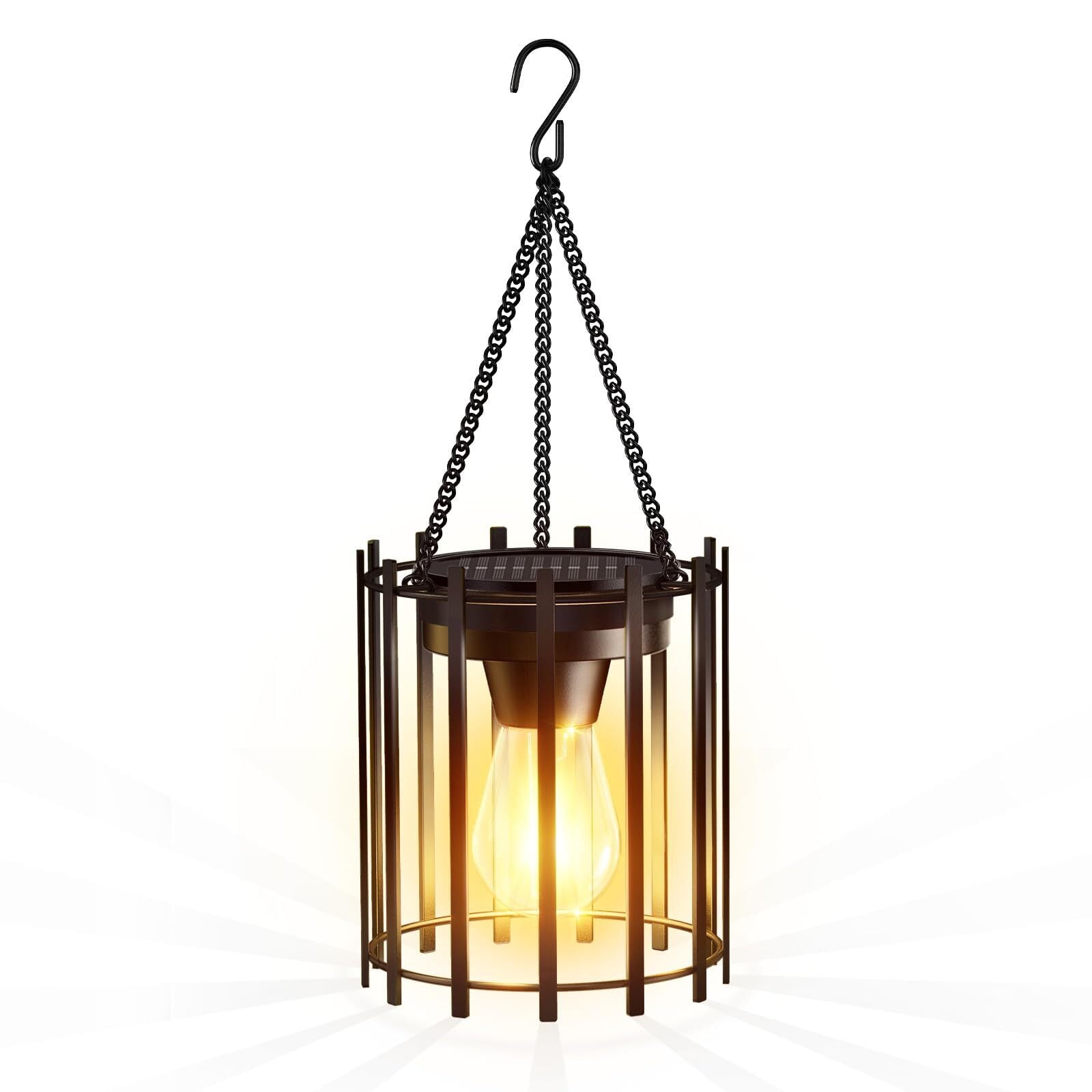 【耐久性に優れた屋外デザイン】高品質金属素材と強化チェーンを採用したフック付きソーラーランタン。厳しい屋外環境にも耐える防錆処理と頑丈な構造で、庭やキャンプでの長期間使用に最適です。高効率ソーラーパネルと大容量バッテリーを搭載し、高輝度フィラメントLEDが最大12時間の連続点灯を実現。直感的なON/OFFスイッチで操作が簡単で、雨風にさらされる場所でも安定した明るさを提供します。