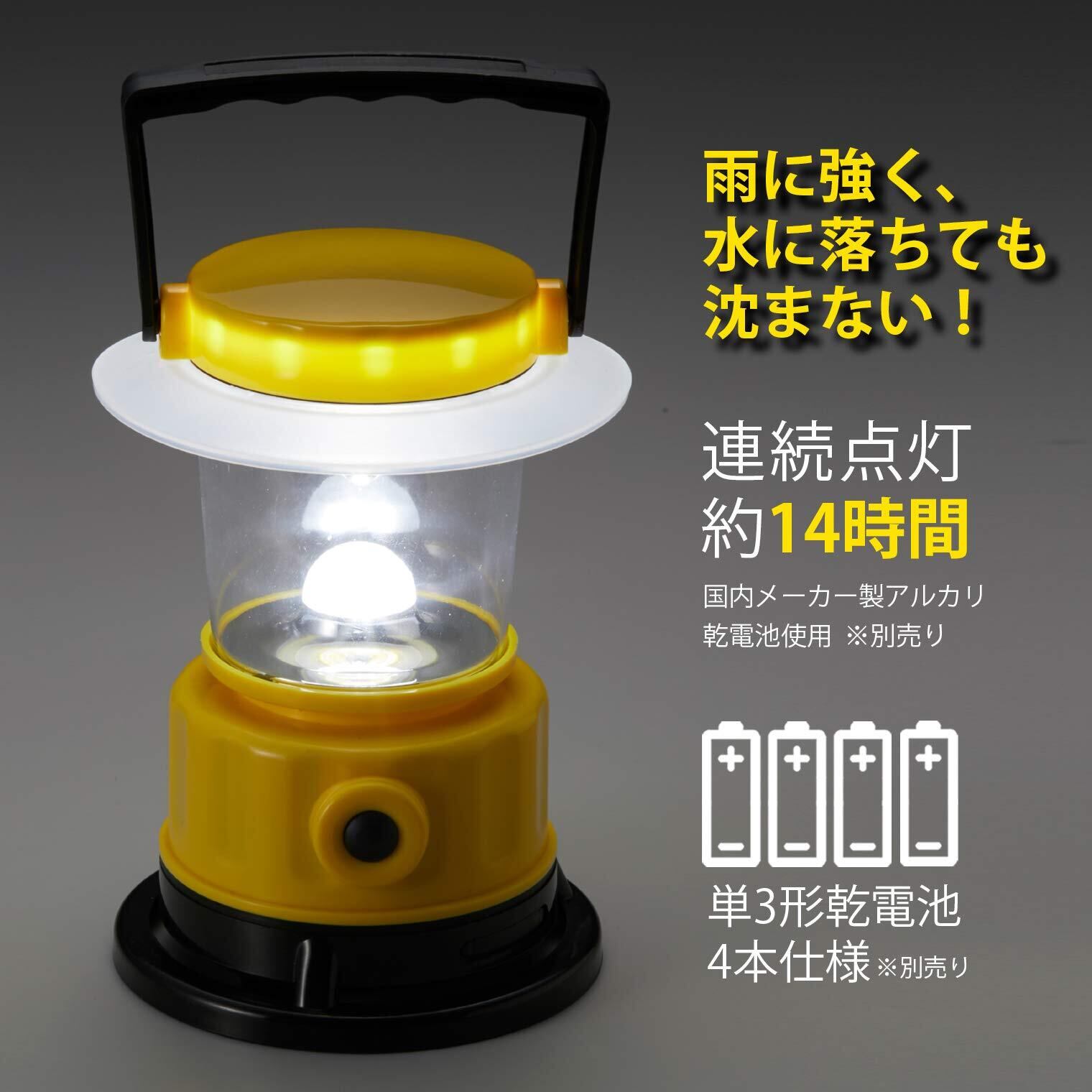 ・防水性能IPX5で雨に強く、水に落ちても沈まない設計です。 ・単3形乾電池4本使用で、連続点灯約 14時間 ・明るさ110lm+反射板で周囲を明るく照らします