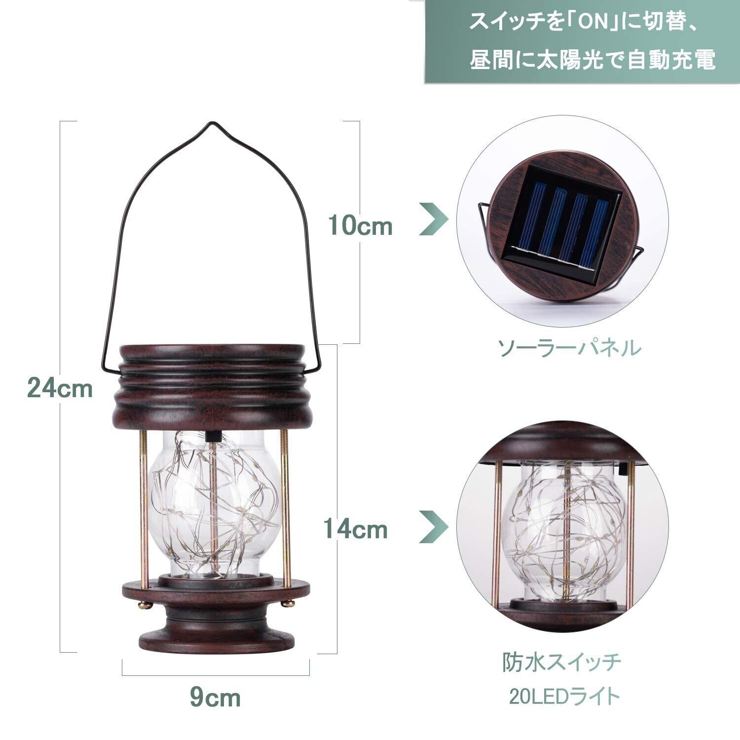 ソーラーランタン ソーラーライト 屋外 防水 ガーデンライト LED おしゃれ ledランタン ベランダライト 暖色 アンティーク 自動点灯 クリスマス 庭 ベランダ ガーデン 玄関先 飾り用 (2個セット, 暖色2)