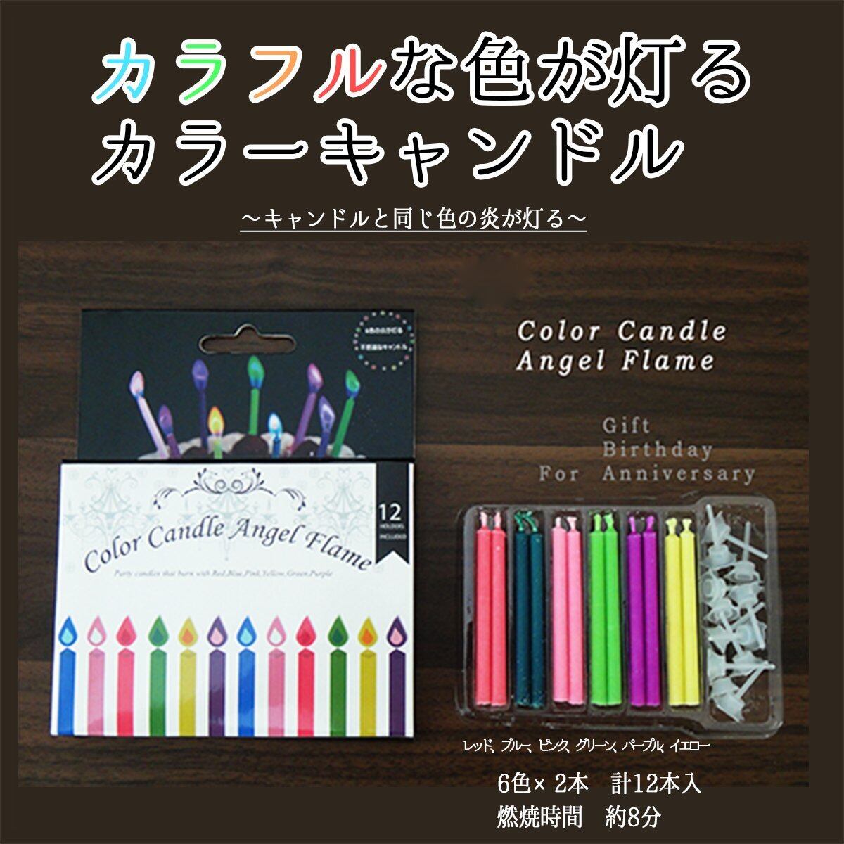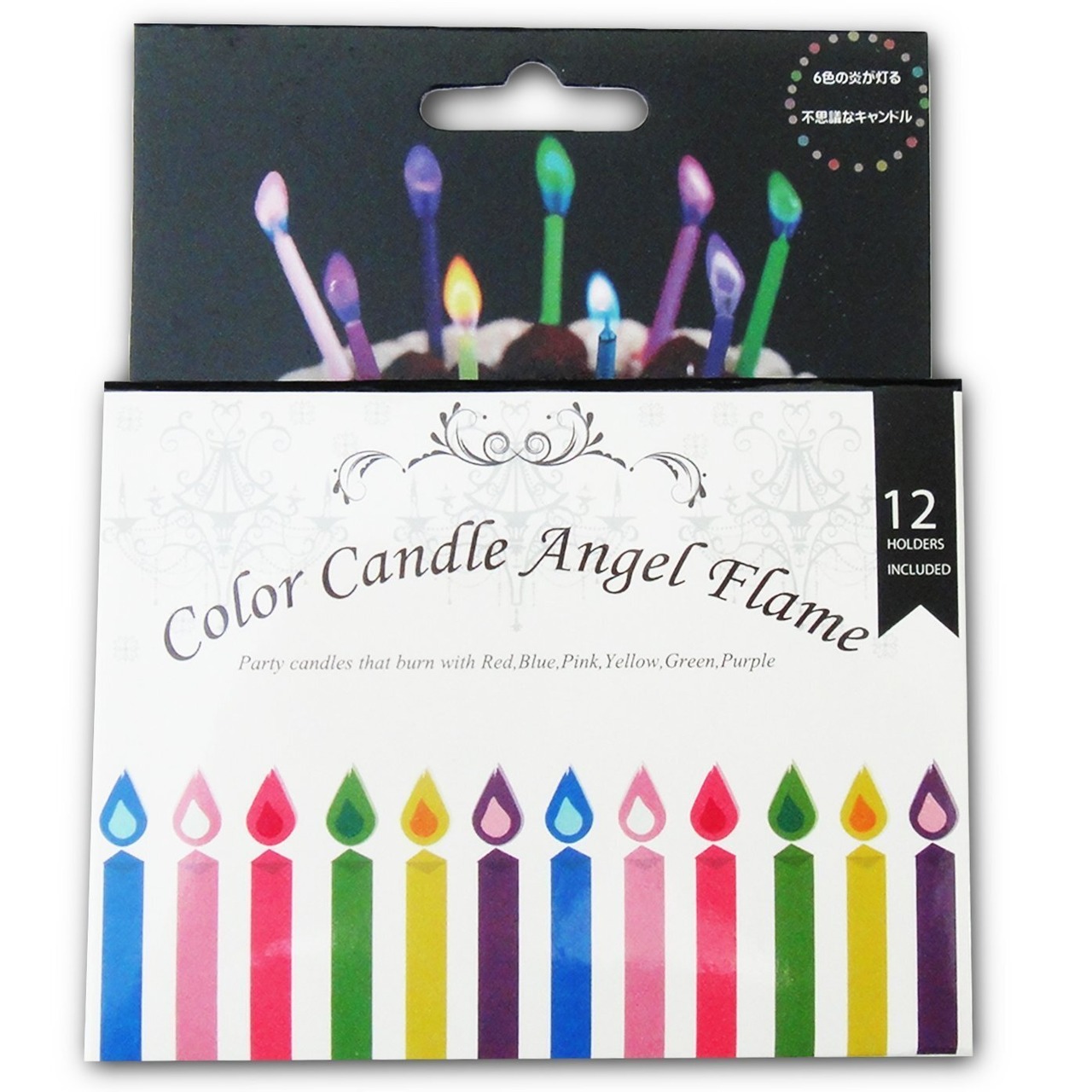 [ドットジャパン] 色付きの炎が灯る カラーキャンドル エンジェルフレーム 12本入(6色×2本) パラフィン不使用