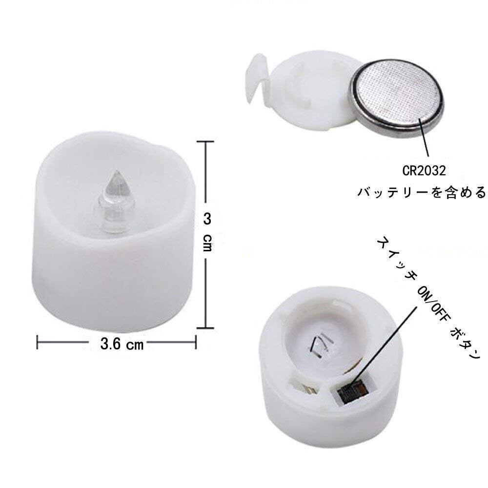 【仕様】材料:LED + PP ; サイズ:幅3.6cm×高3cm 【セット内容】:12 X LEDキャンドルライト本体(CR2032電池を含め)届いたらすぐ利用できます!