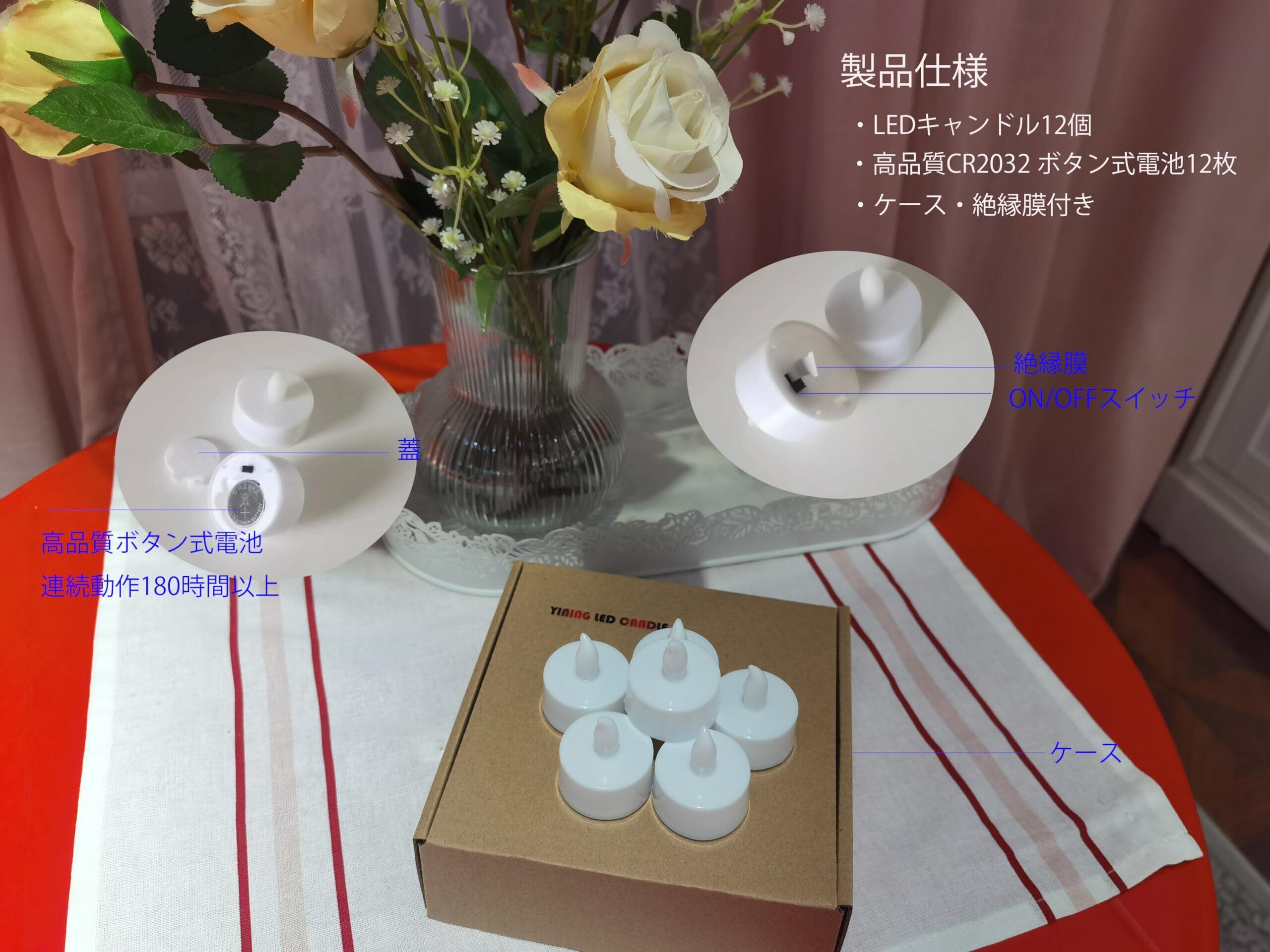 セット内容:LEDキャンドル12個セット+CR2032ボタン式電池12枚付属