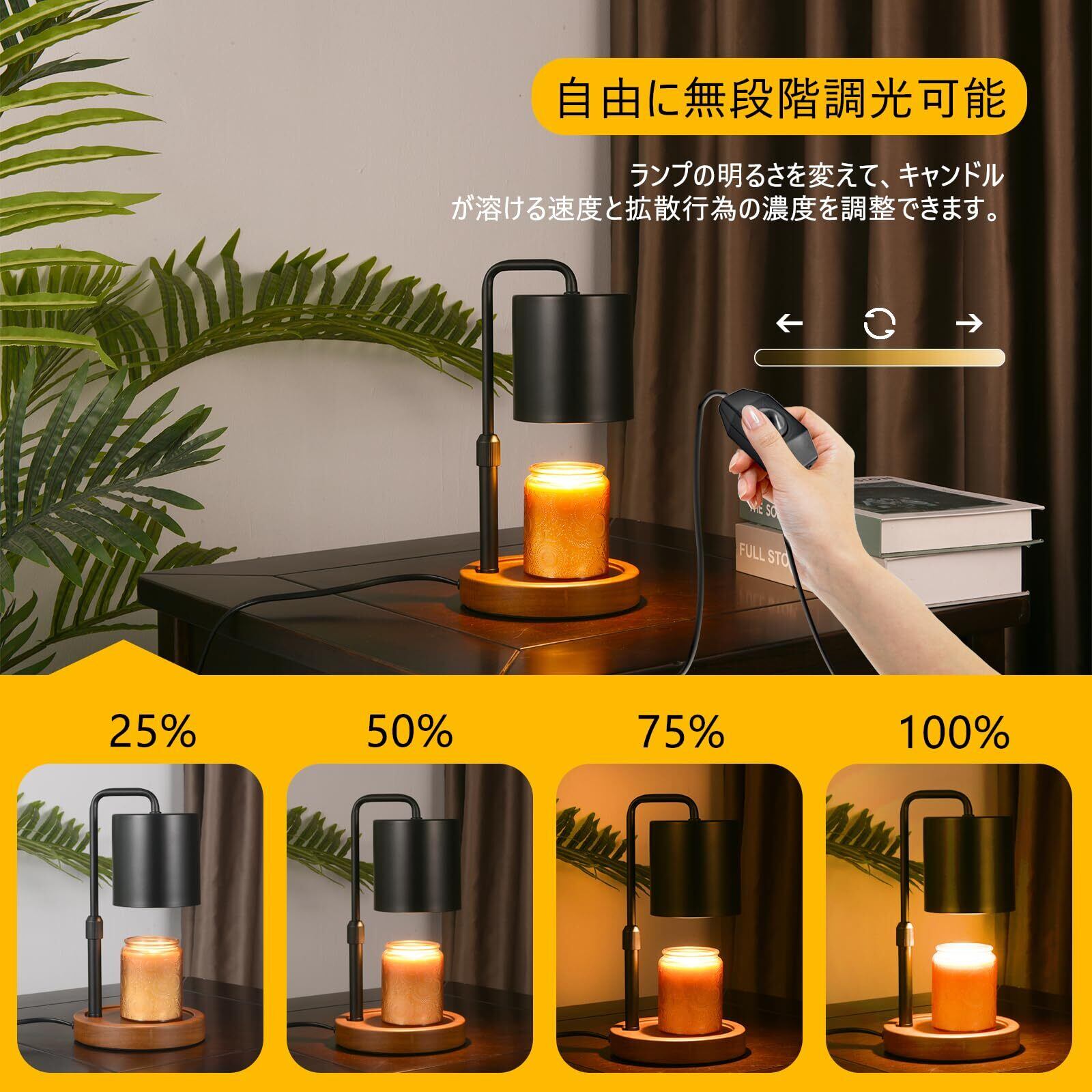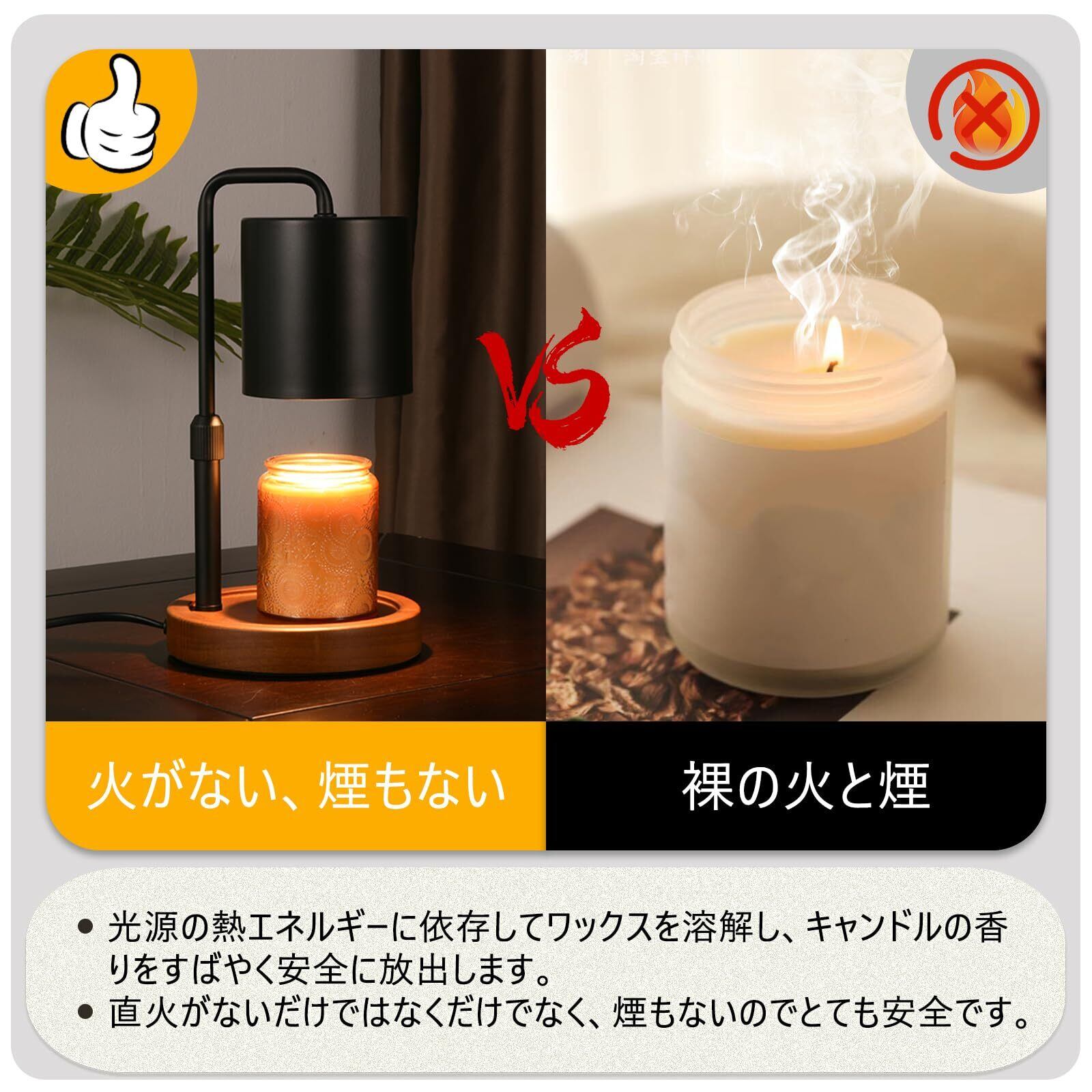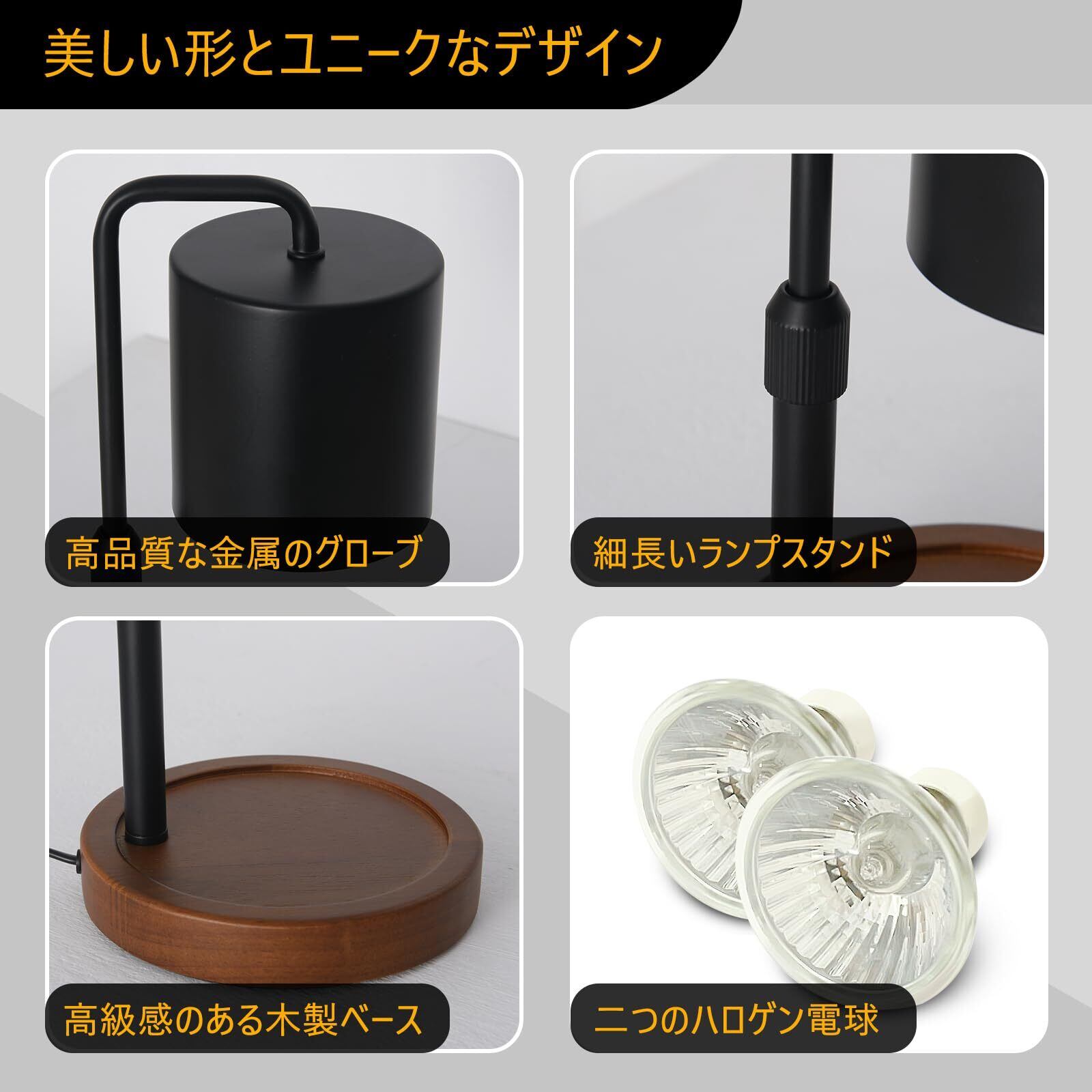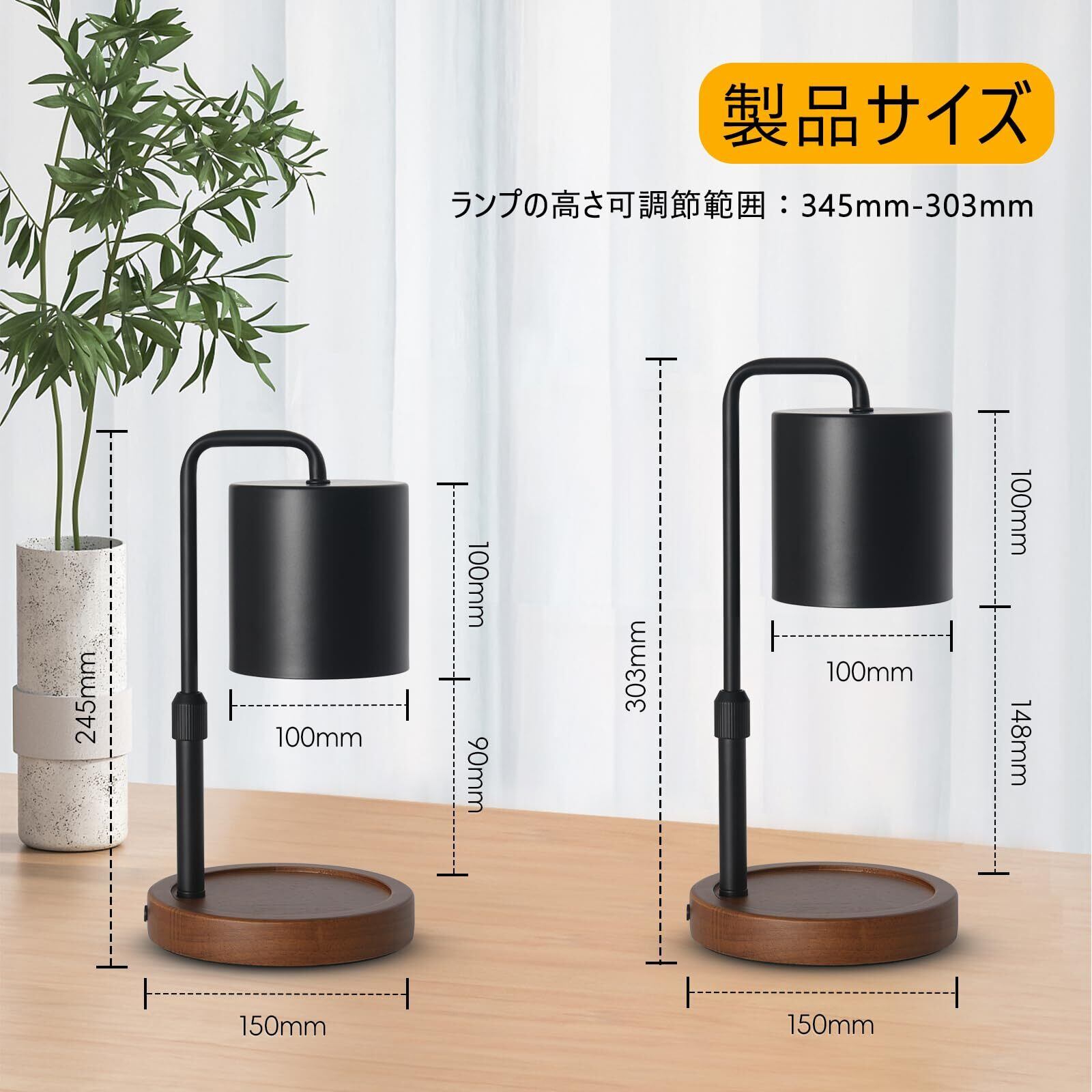 SAOSUP キャンドルウォーマー ランプ アロマキャンドルバーナー 無段階調光 高さ調節可能 GU10電球2個 PSE認証済み おしゃれ (ブラック)