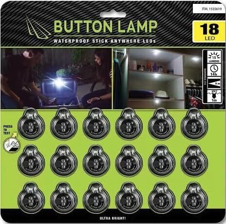 LEDボタンランプ 18個パック 15ルーメン 14時間のバッテリー寿命 IPX7防水性能