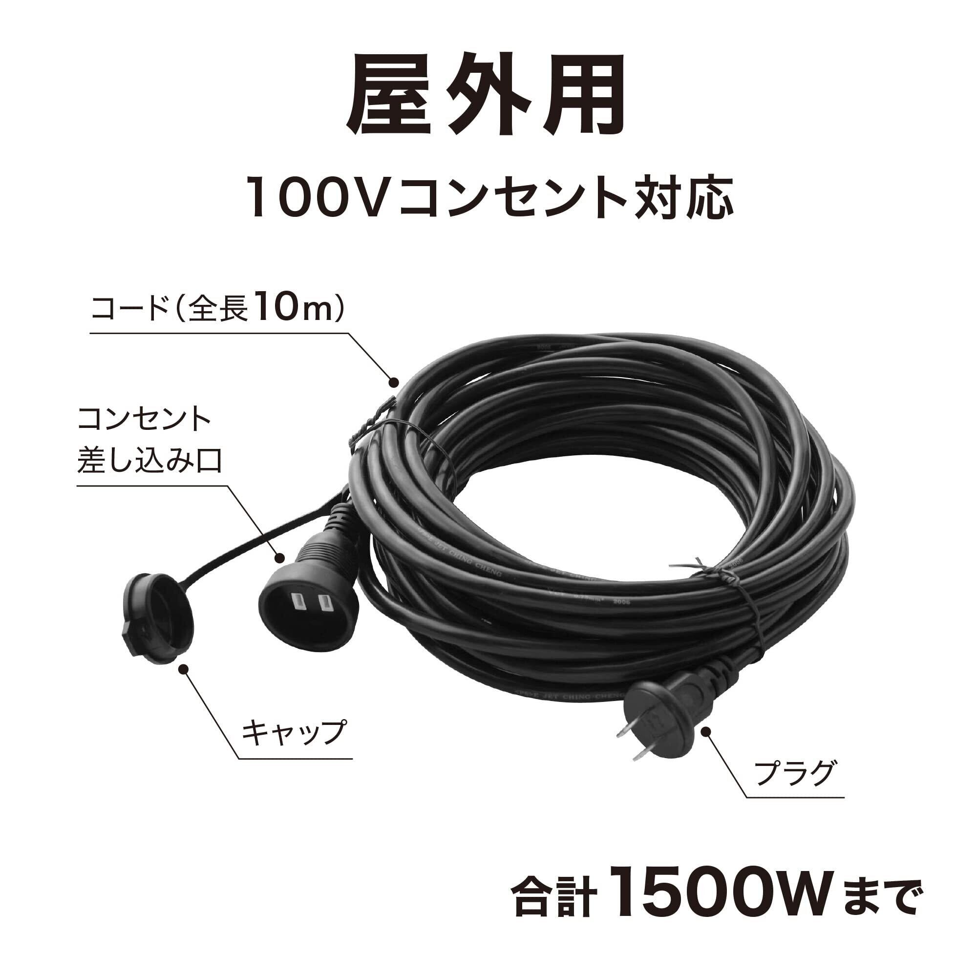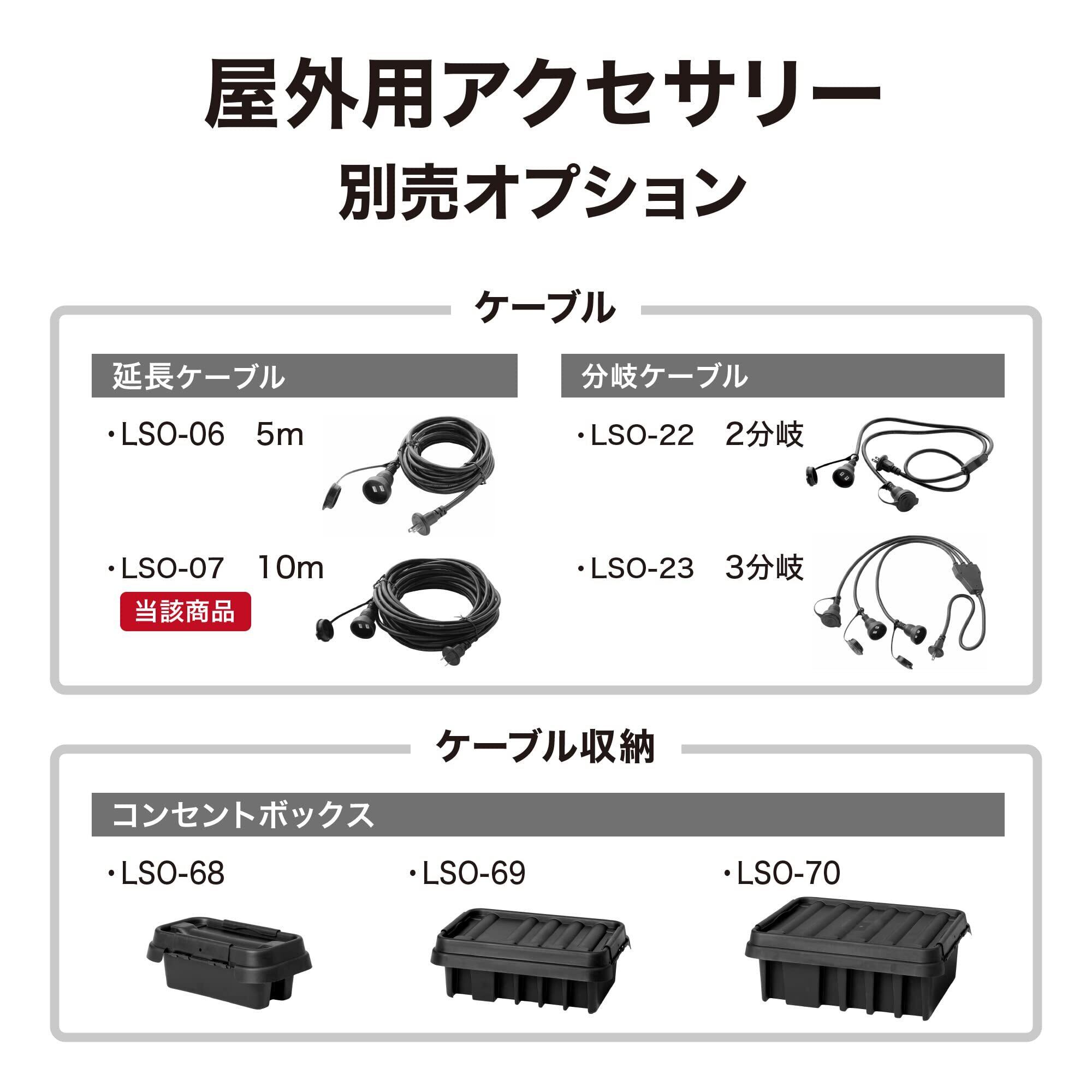 タカショー ライト アクセサリー 屋外用延長ケーブル 1500W 全長:約10m ブラック イルミネーション 屋外 防水 ライトアップ 塩化ビニル樹脂 LSO-07