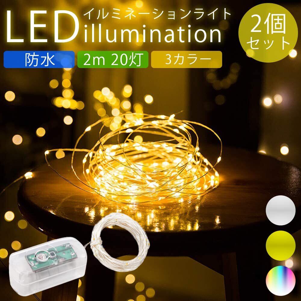prendre 【2個セット】 イルミネーションライト LED 防水 2m 20灯 柔軟 自由自在 装飾 電飾 クリスマス パーティー 結婚式 ガーデンライト 屋外 屋内 (ホワイト) PR-LUMI20020-WH | KSショップ