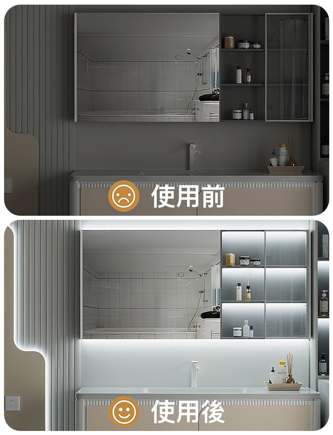 【工事不要・取付簡単・自由切断可】 剥がす・貼る・プラグアンドプレイLEDライト!薄型フレキシブルデザインラインライト、直線はもちろん、角面や曲線部分などの段差のあるところにも設置できます。薄くて軽くて、天井の隙間や戸棚の隙間など、比較的狭い空間にも適した優れた補助照明です。設置のポイント①:LED光源が直接見えないように設置して、目に優しい。②上or下へ向けて設置して、光の反射が出やすい。