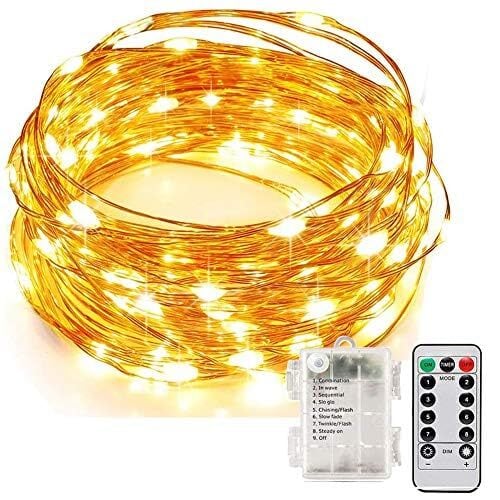 vviho LEDイルミネーションライト ストリングライト ハロウィン飾り ジュエリーライト 100球 10m 電池式 リモコン付 8パターン タイマー機能 点滅 点灯IP67防水 防塵仕様 クリスマス 学園祭 LED飾りライト 屋外 室内 ガーデンライト 正月飾り 結婚式 誕生日 パーティー 電飾 (ウォームホワイト 10m) | KSショップ