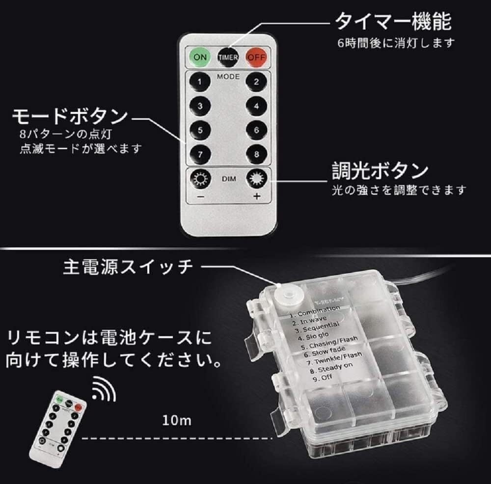 vviho LEDイルミネーションライト ストリングライト ハロウィン飾り ジュエリーライト 100球 10m 電池式 リモコン付 8パターン タイマー機能 点滅 点灯IP67防水 防塵仕様 クリスマス 学園祭 LED飾りライト 屋外 室内 ガーデンライト 正月飾り 結婚式 誕生日 パーティー 電飾 (ウォームホワイト 10m)