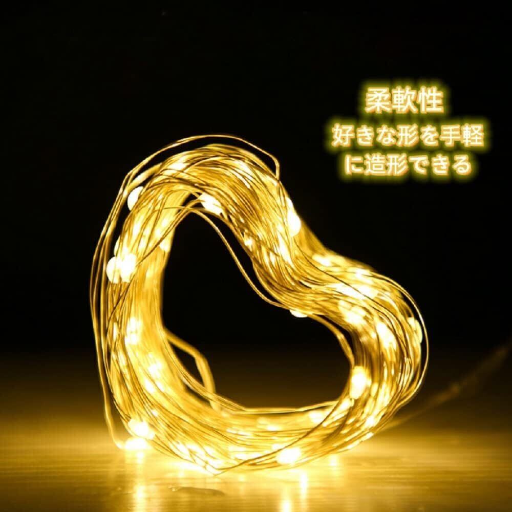 【耐久性&柔軟性】全体の長さは10メートルであり、100電球を持っています。頑丈な銅線を採用して、銅線の部分は曲がったり折ったりしても変形と崩壊はしません。好きな形を手軽に作り出来ます。庭園の植物、クリスマスツリー、工芸品、家具などの装飾に最適です。ストリングライトは、星空のような照明効果を提供してくれ、雰囲気も暖かくになります。