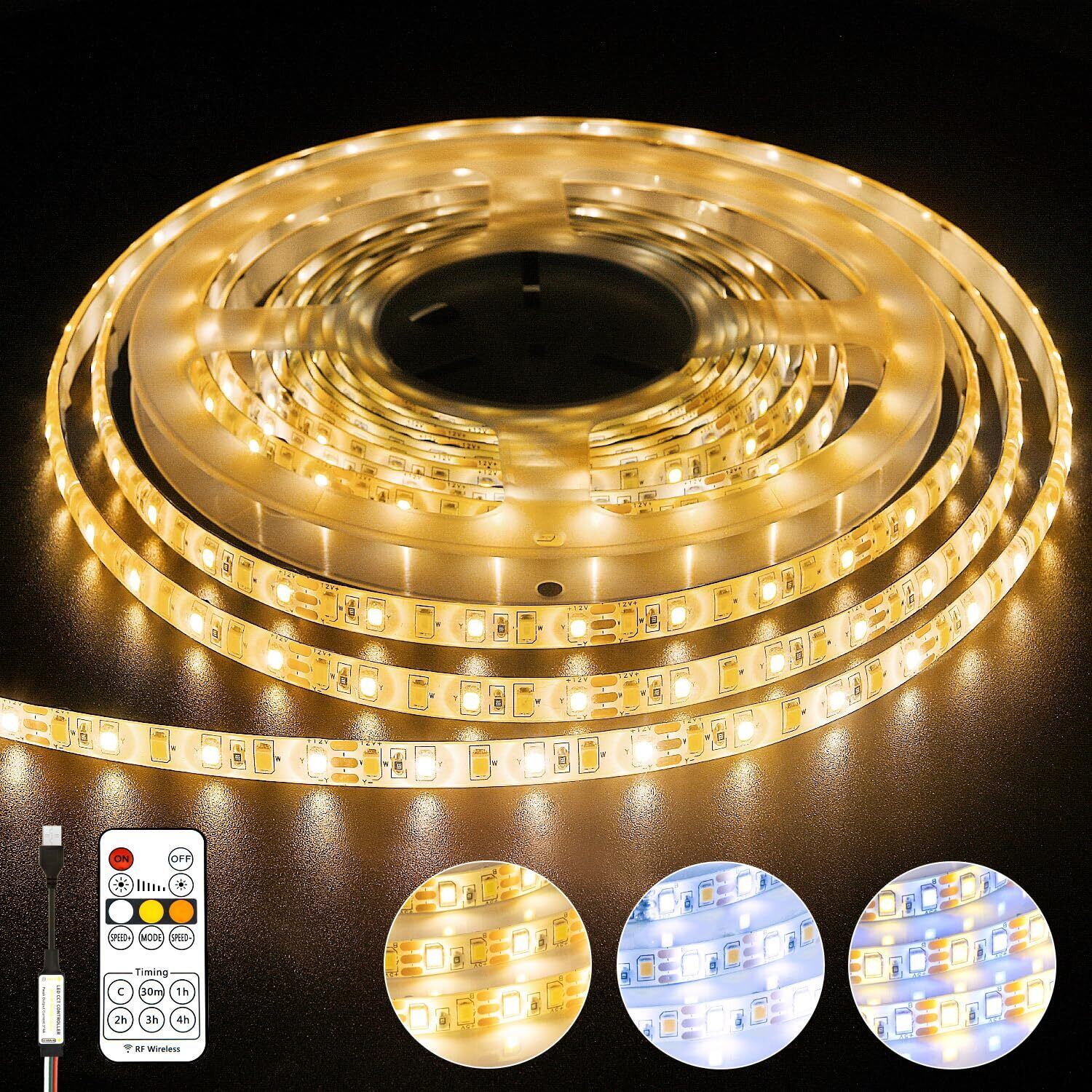 cshare LEDテープライト 防水 USB給電式 2m テープライト 240LED SMD2835 間接照明 電球色/昼光色/交替色 選択可能 タイマー機能 無段階調光 調速 リモコン制御 両面テープ・切断可能 寝室/店舗/階段/ベッド/車内/テレビバック 装飾用