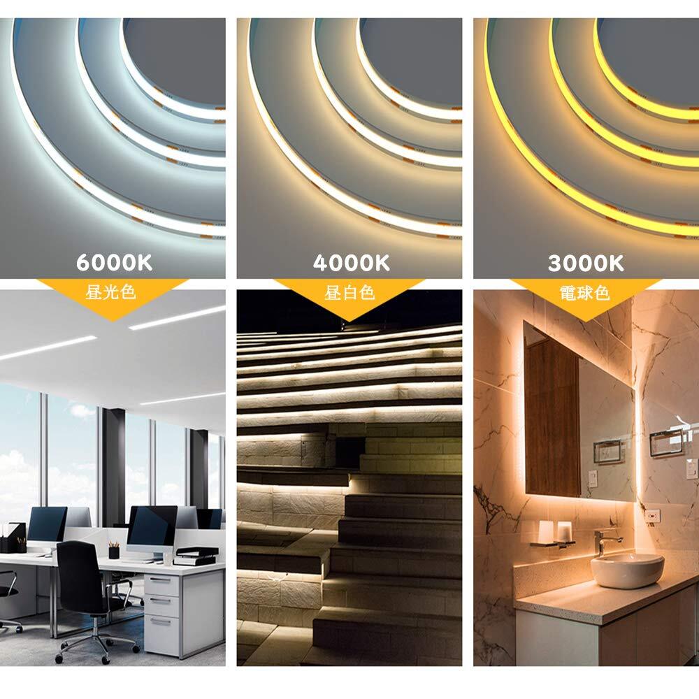 「安全、省エネ、耐久性」FCOB単色シリーズのLEDテープライトはより省エネです。 調光可能で、寿命は50000時間以上と耐久性に優れています。2年間の安心と24時間のカスタマーサービスを提供します。通常のLEDテープライトよりも柔らかく均一な光で、目にも安全です。 発色指数が高くて、照明効果がいいです。紫外線や赤外線、水銀、鉛などの重金属を含まず、環境にやさしいです。光の減衰率は1000時間後に3%未満になり、光の減衰率は3500時間後に30%未満になります。ご注意してください。