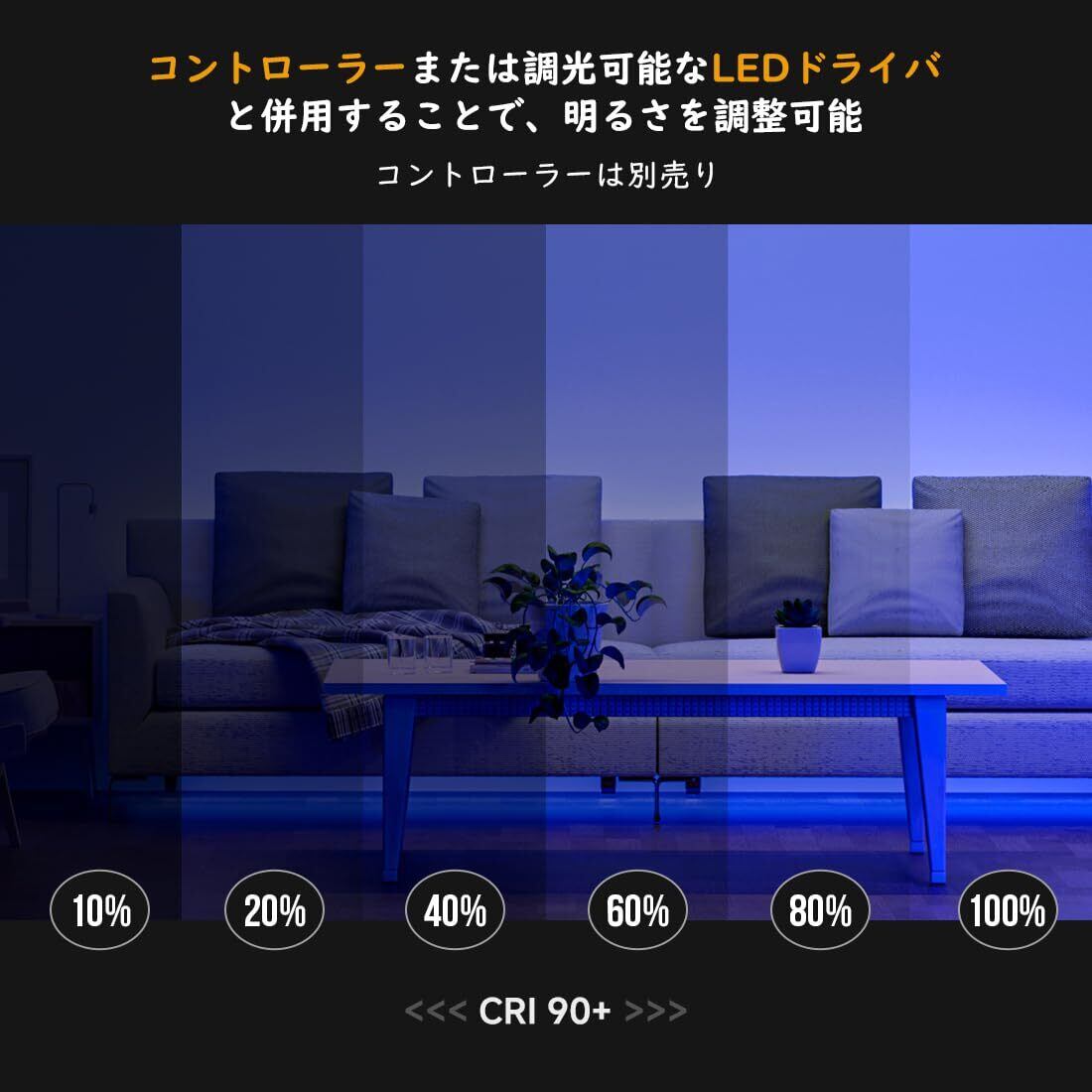 「省エネ」 FCOB単色シリーズのLEDテープライトはより省エネです。 調光可能で、寿命は30000時間以上と耐久性に優れています。 また、2年間の安心と24時間のカスタマーサービスを提供します。調光器は含まれていませんのでご注意ください。また、光の減衰率は1000時間後に3%未満になり、光の減衰率は3500時間後に30%未満になります。ご注意してください。