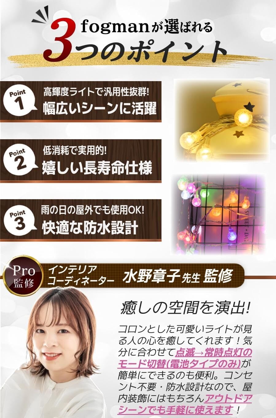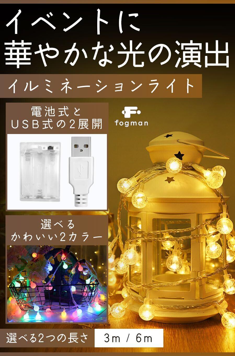 【インテリアコーディネーター監修】fogman イルミネーションライト フェアリーライト ストリングライト 電飾 飾り付け LED (ホワイト(6m電池))