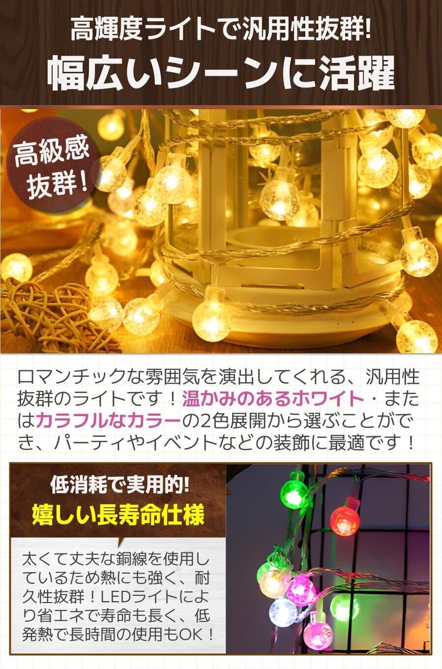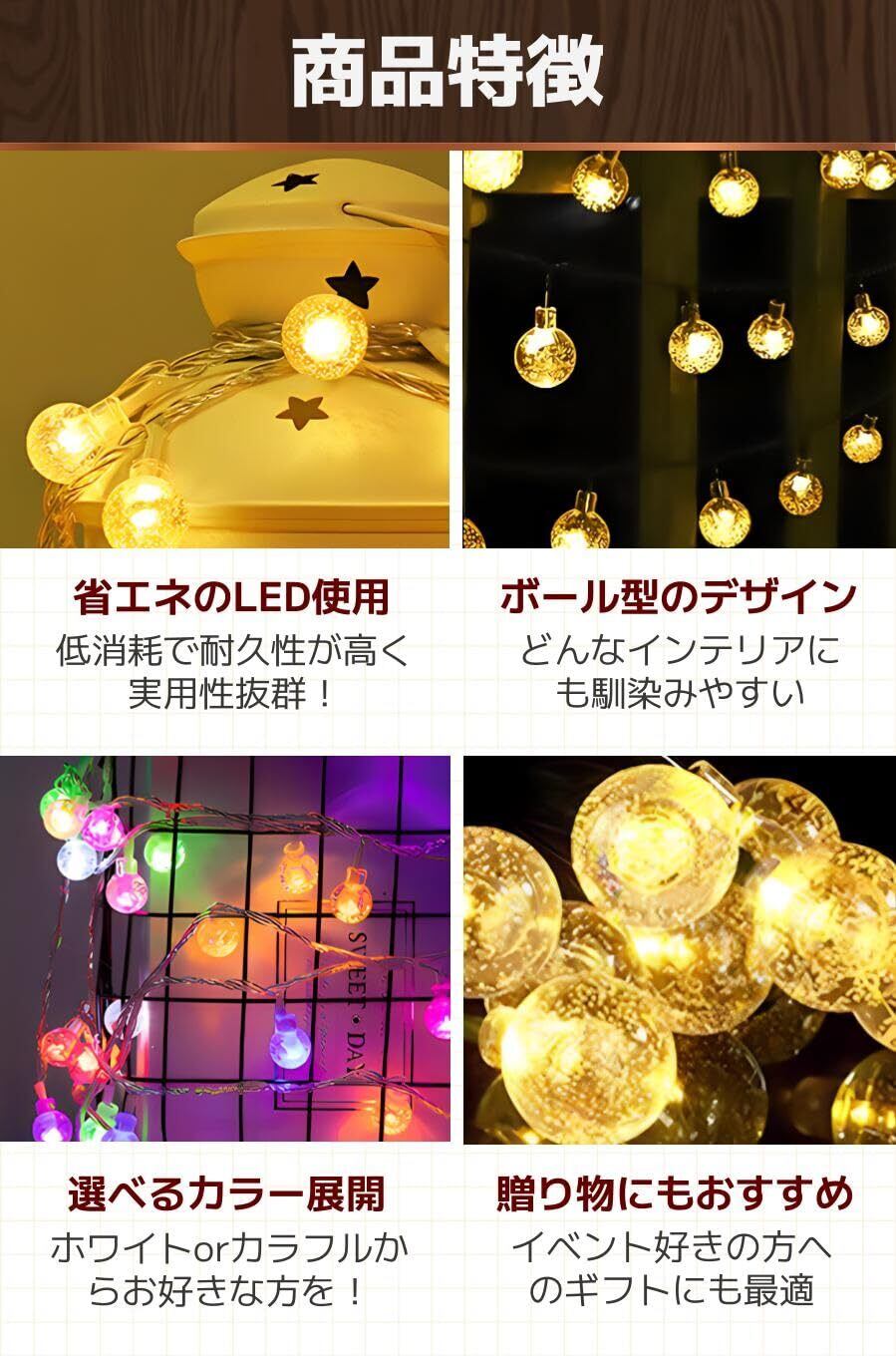 【商品特徴】①省エネのLED使用:低消耗で耐久性が高く実用性抜群!/②ボール型のデザイン:どんなインテリアにも馴染みやすい/③選べるカラー展開:ホワイトorカラフルからお好きな方を!/④贈り物にもおすすめ:イベント好きの方へのギフトにも最適