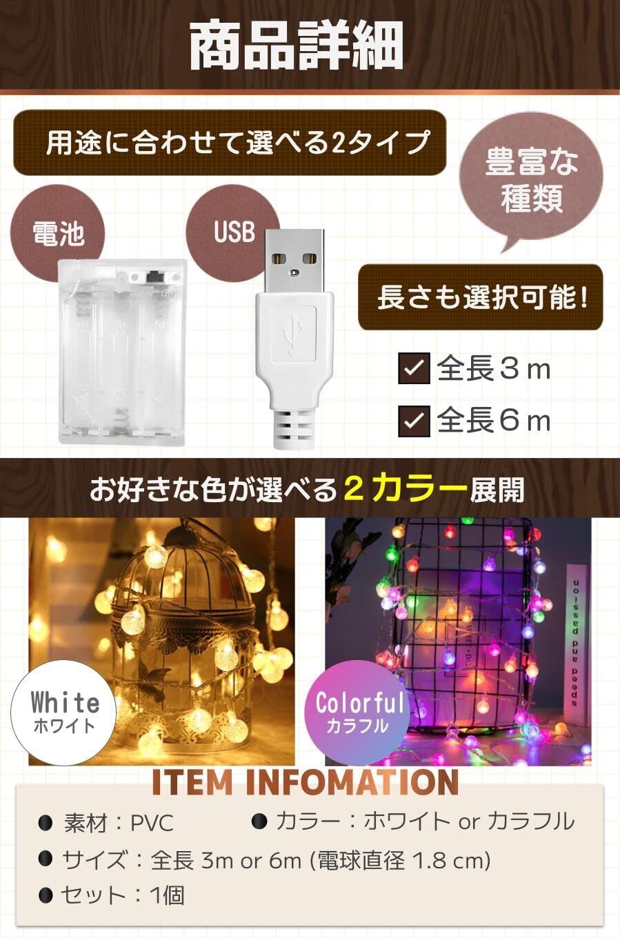【商品詳細】カラー:ホワイト or カラフル素材:PVC/サイズ:全長 3m or 6m (電球直径 1.8 cm)/セット:1個/