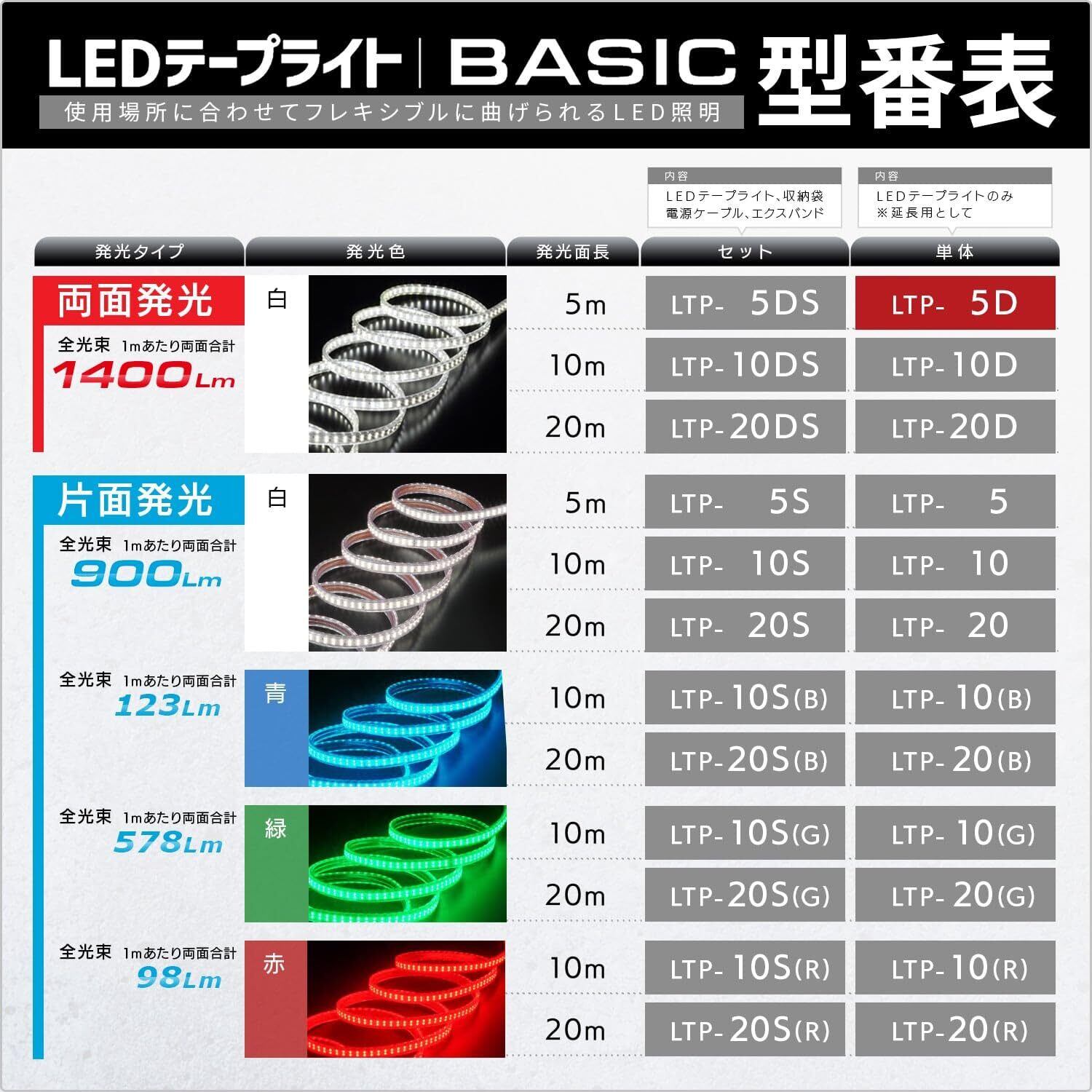 ハタヤ LEDテープライト 5m ライトのみ 両面発光タイプ LTP-5D