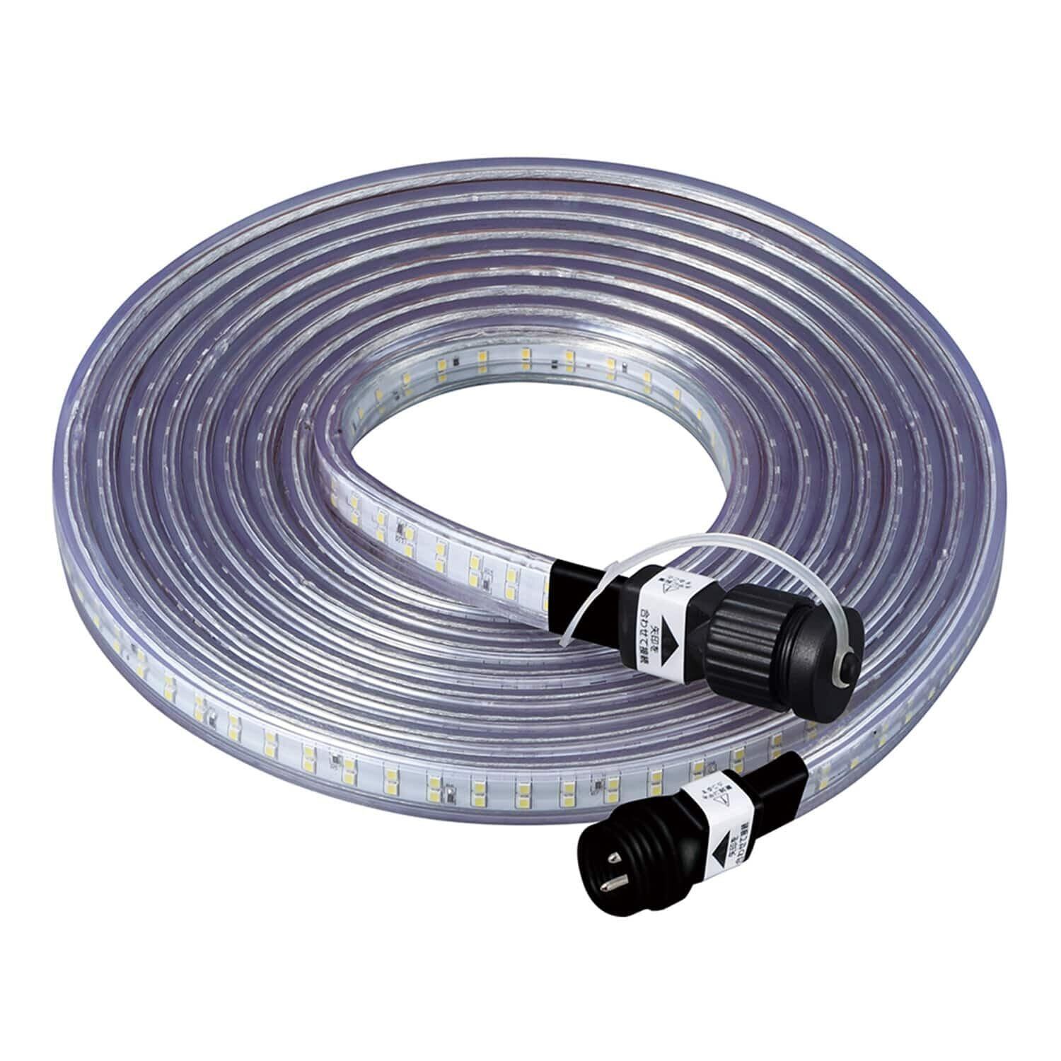 【特徴】使用場所に合わせてフレキシブルに曲げられるLED照明。発光面を気にせず使える両面発光タイプ。50mまで連結可能。雨中でも使える屋外用防雨型です。連結部分は防水仕様、コネクターキャップ付です。屈曲試験では高い耐久性を実証しています [耐衝撃保護等級「IK10」]。万一の断線時も、故障箇所だけを切除し、別売の補修キットを使って修理可能です。(50cm間隔で切断可能)
