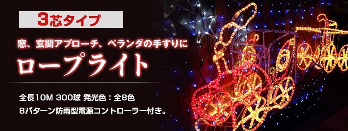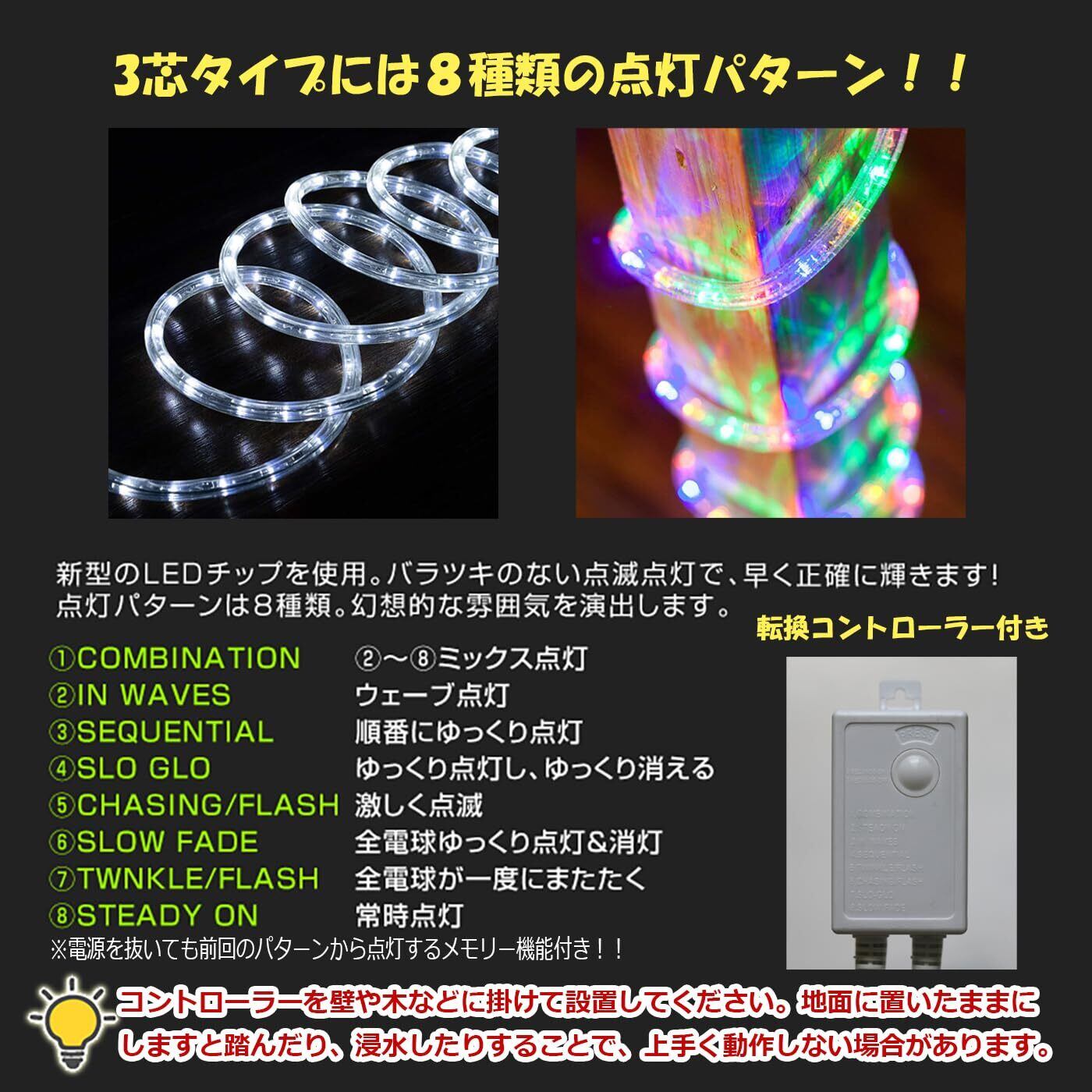 SUCCUL LED ロープライト チューブライト 10m(コントローラー、電源付き)防水 イルミネーション クリスマスライト 照明 屋内屋外 3芯タイプ