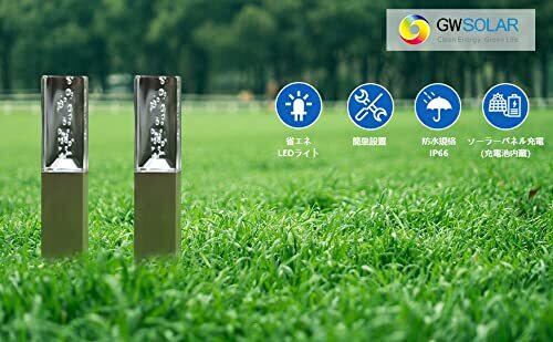 GWSOLAR【スタイリッシュ透明感のある光!ソーラー イルミネーションライト/ 6cm角・高さ30cm, 2個組/ アクリルスクェア】自動点灯・自動消灯、ホワイト色、IP65、配線不要、簡単設置、ネジ止め・挿し込み可、お庭/玄関先/階段/デッキ/ガーデンの灯 、GWソーラー ステンレス ポール ライト 【型番: GW-DO116/W-30(2P) 】 | KSショップ