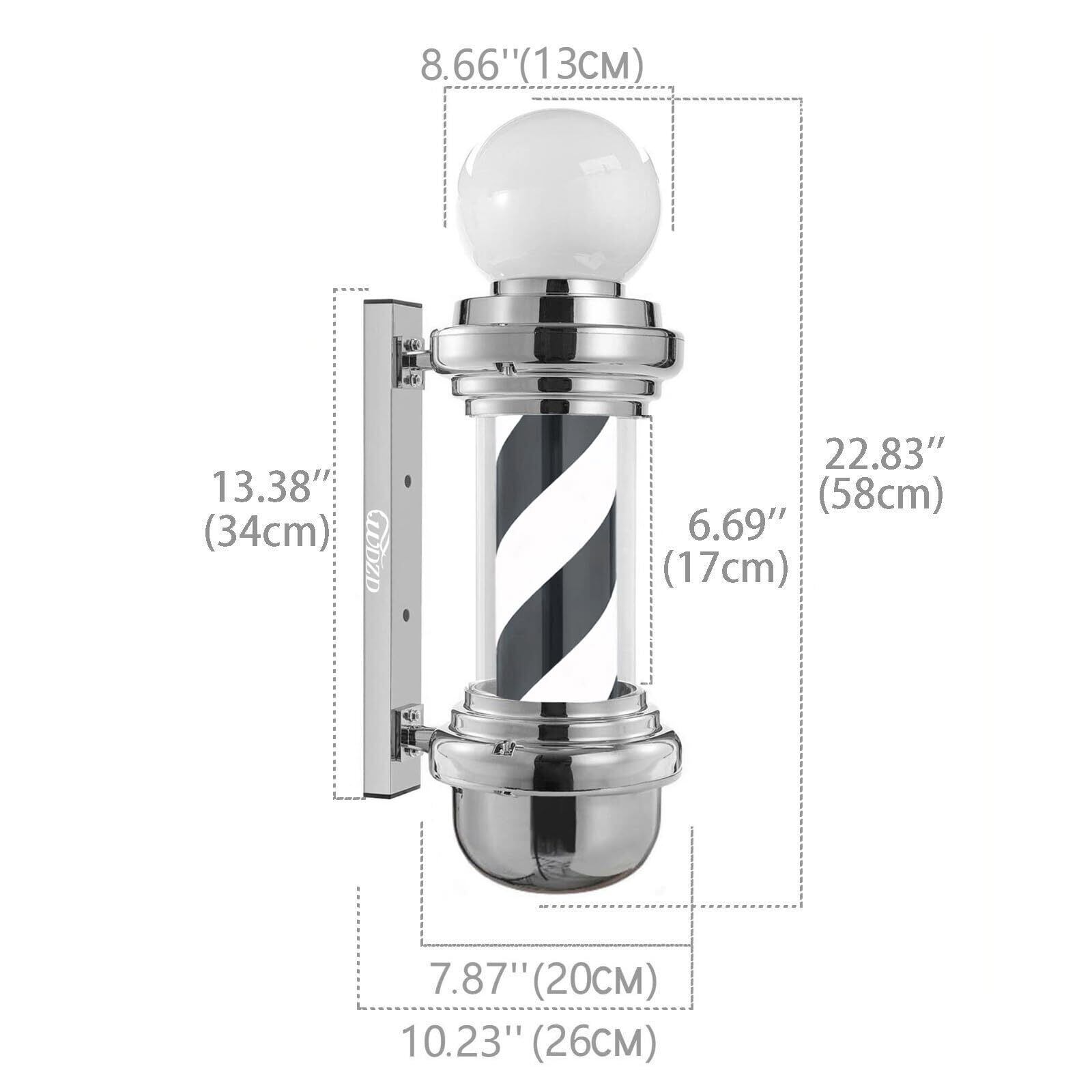 WDZD 58 cm サインポール、小さい銀白黒ストライプ床屋のマーク、壁掛け式、省エネ