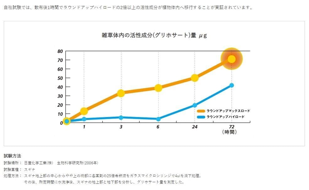 有効成分:カリウム=N-(ホスホノメチル)グリシナート48.0%、成分:グリホサートカリウム塩・水・界面活性剤等