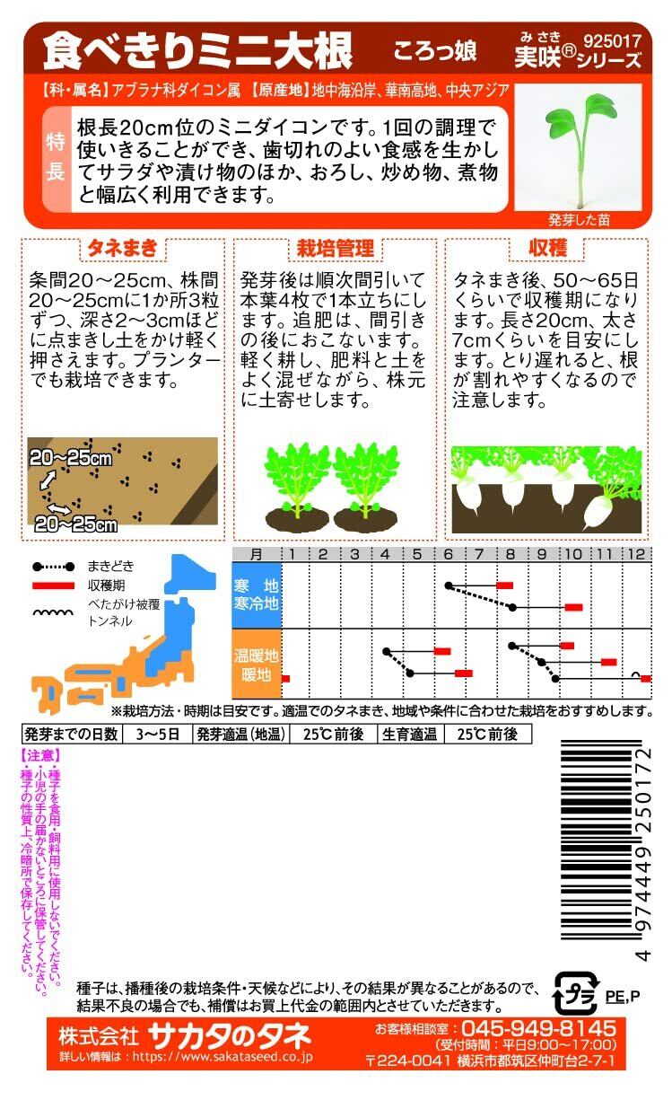 サカタのタネ 実咲野菜5017 食べきりミニ大根 ころっ娘