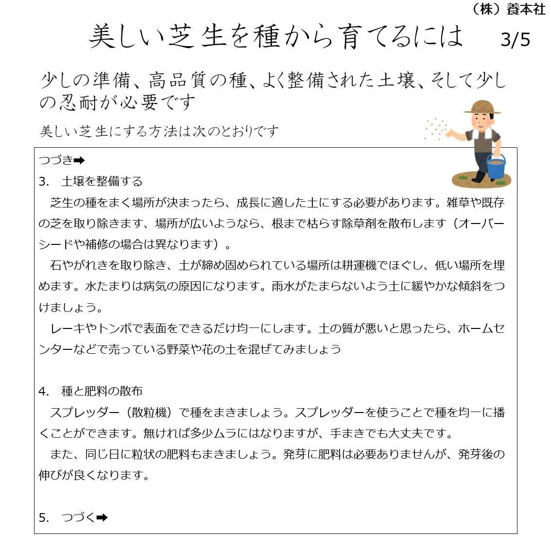 内容量:400g(約10㎡~20㎡分)まきどき:春3月下旬~6月・秋8月下旬~10月 発芽率:75%以上