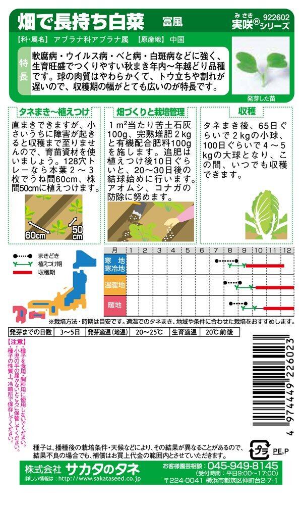 サカタのタネ 実咲野菜2602 畑で長持ち白菜 富風 00922602