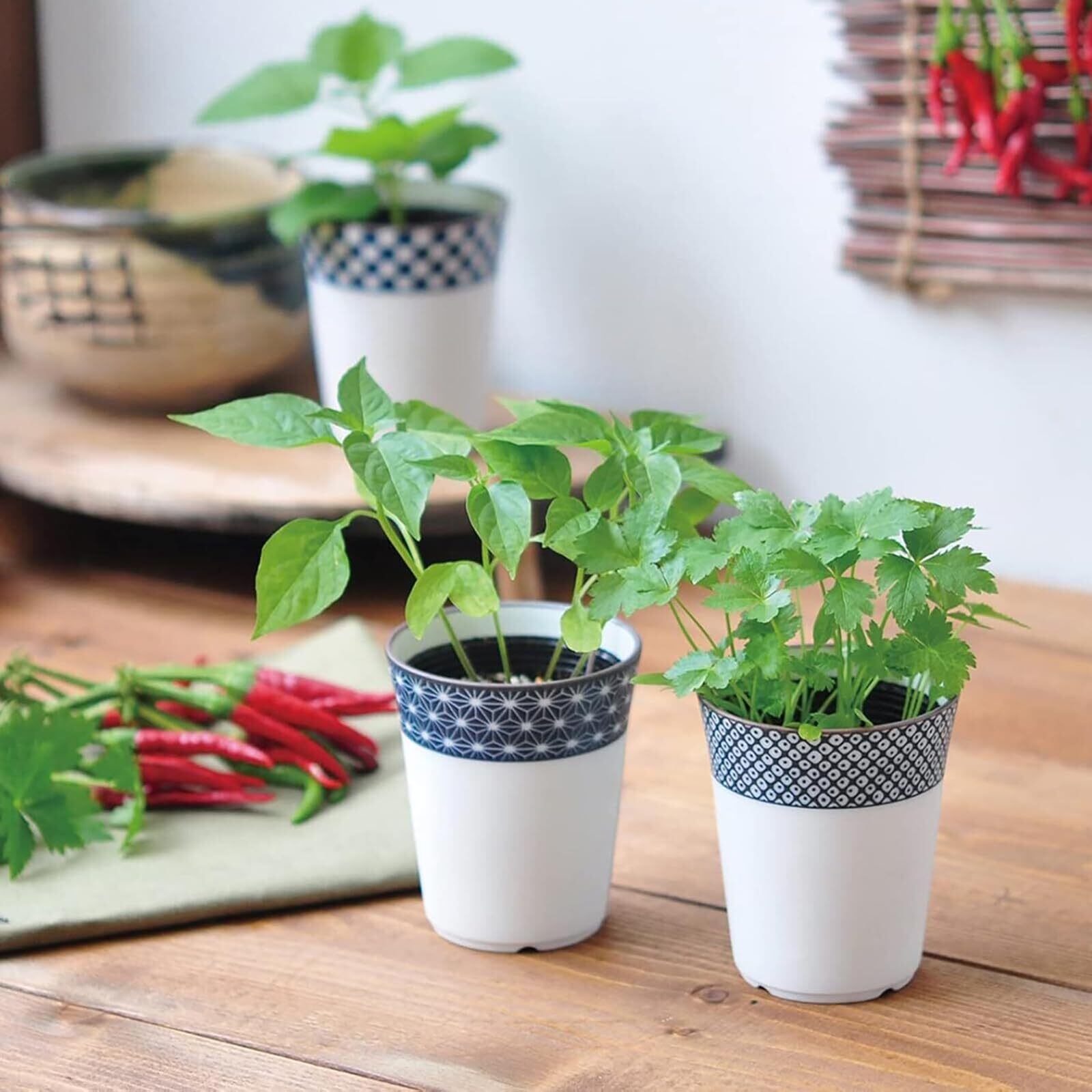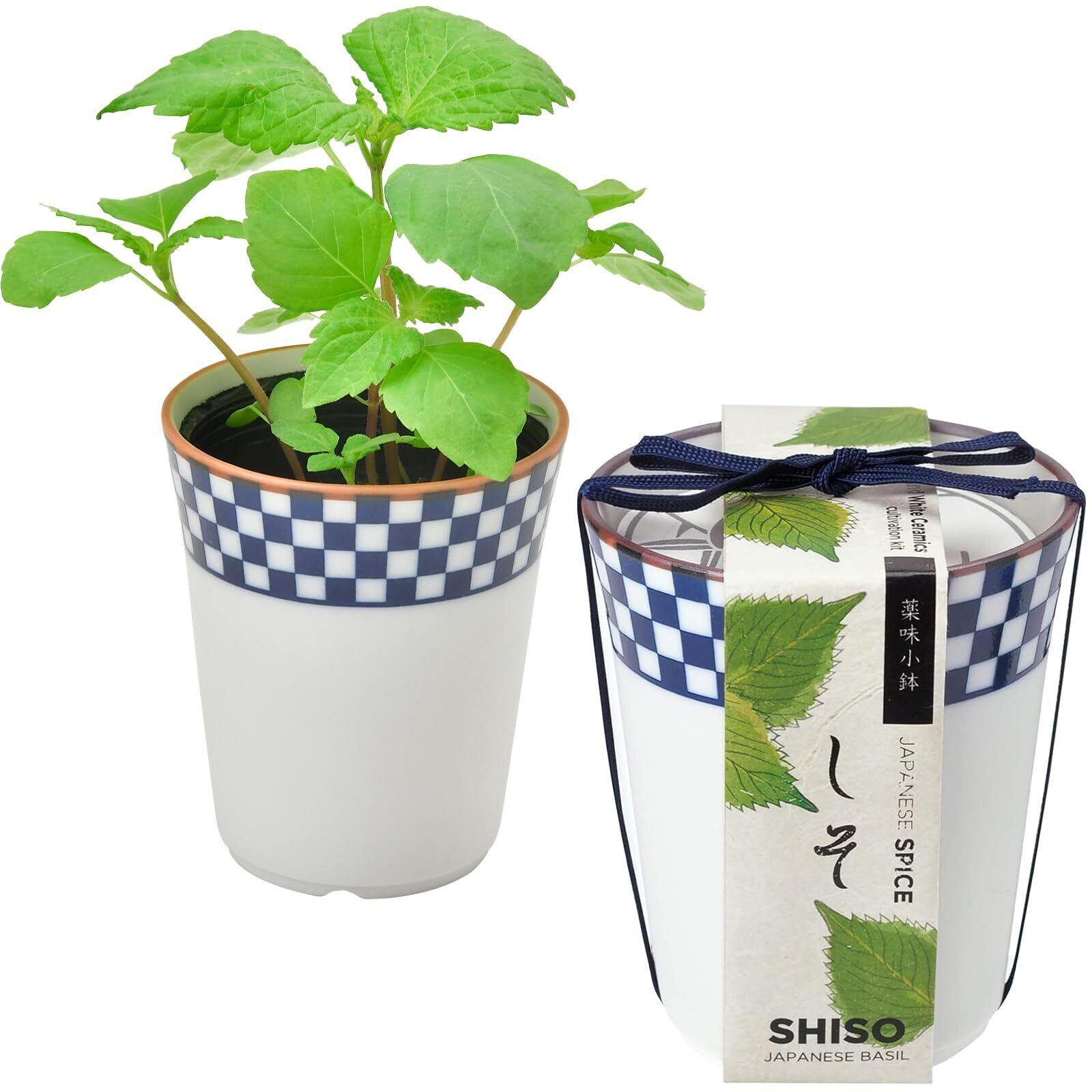 聖新陶芸 通年 家庭菜園 簡単 栽培キット ゆったり育てる シソ 大葉 ハーブ 野菜 栽培セット ( 自由研究 / 食育 ) 鉢の径7cm 染付小紋 薬味小鉢 母の日 プレゼント 誕生日 GDー75801 | KSショップ
