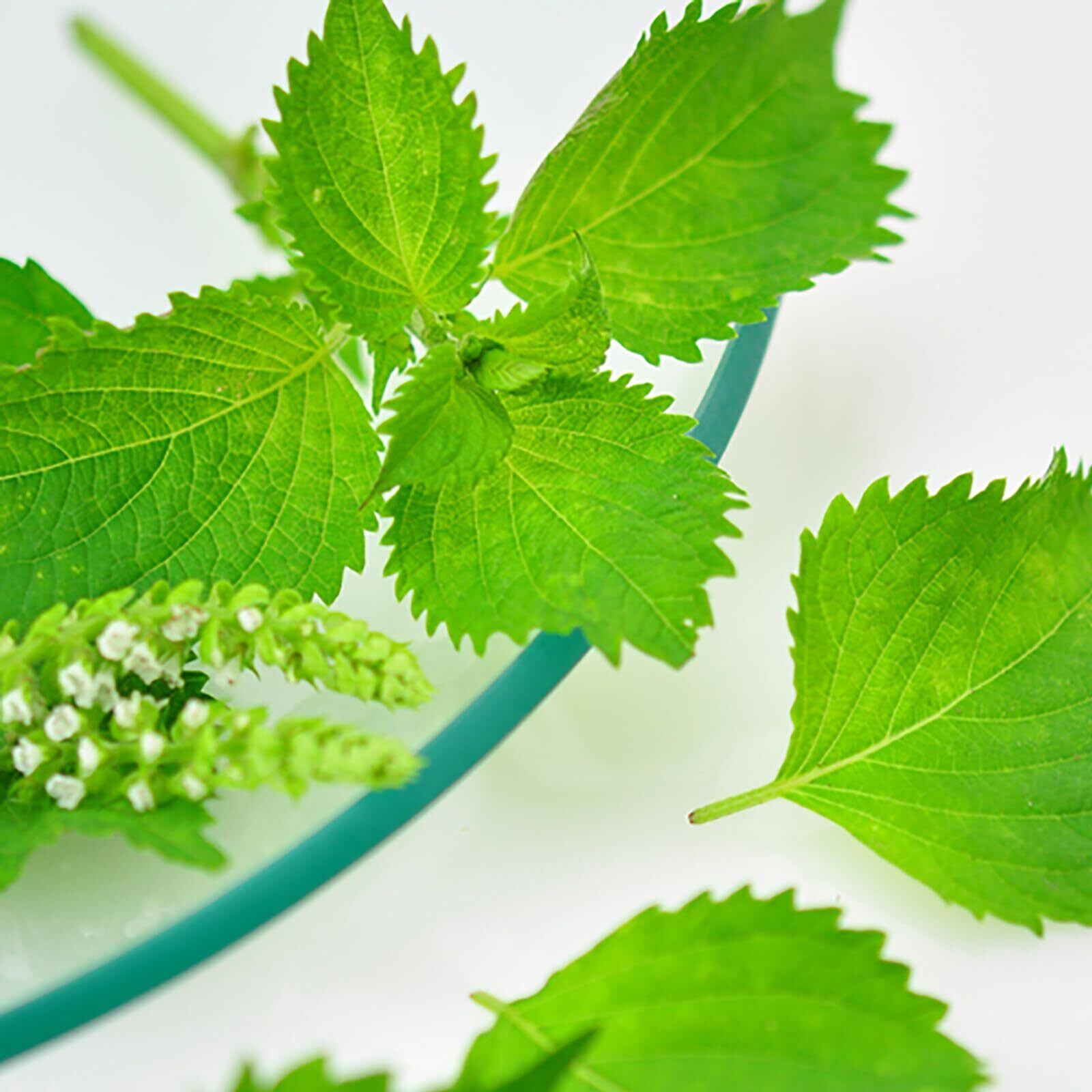 【シソ】大葉とも呼ばれ、彩りと独特の風味が食欲をそそる